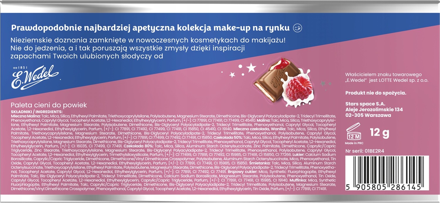 Оплачивая «Stars від stars WEDEL Палетка тіней для повік Тіні 10 кольорів NUDE», вы можете быть уверены, что данное изделие из каталога «Макияж палитры и наборы» будет доставлено из Польши и проверено на целостность. В цене товара, указанной на сайте, учтена доставка из Польши. Внимание!!! Товары для Евросоюза, согласно законодательству стран Евросоюза, могут отличаться упаковкой или наполнением.
