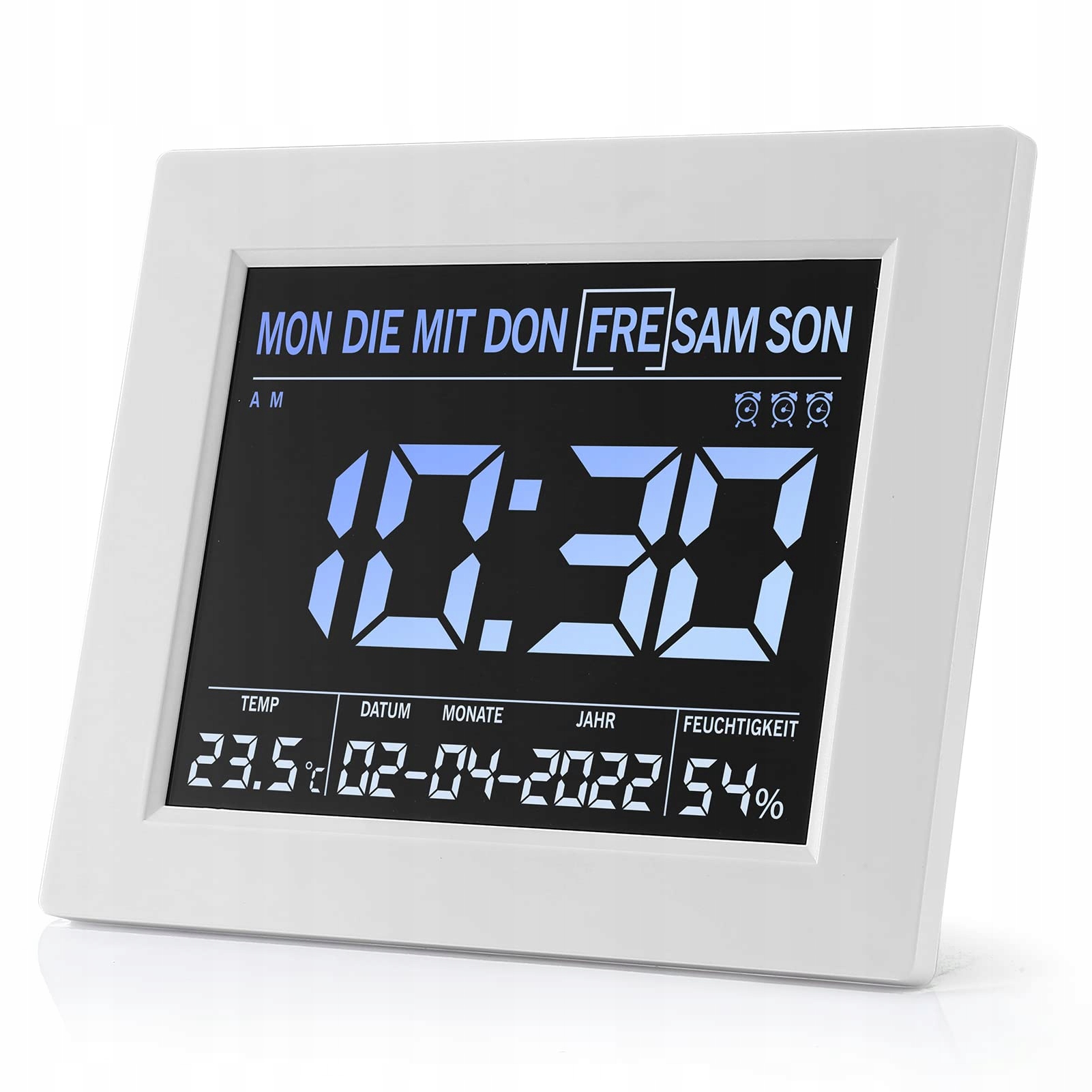 【Лучшие варианты подарка】: цифровые настенные часы имеют отверстие для подвешивания и подставку, которую можно разместить не только на прикроватной тумбочке, но и на стене. Эти электронные часы-календари, упакованные в нейтральную коробку премиум-класса, имеют зеленый цвет и экологичность, без каких-либо оскорбительных слов. Они идеально подходят в качестве подарка вашим дорогим бабушкам и дедушкам и родственникам. 🕒【Продвинутый дизайн】: эти цифровые часы-календарь с ЖК-дисплеем высокого разрешения четко отображают время и дату большими буквами, могут быть установлены на 12 часов или 24 часа по желанию, а также имеют несколько будильников и пять уровней яркости. Совершенная пользовательская система и простые в использовании кнопки помогают пожилым людям жить самостоятельно и запоминать различные события без сложных и запутанных операций. 🕑【Внутренний термометр-гигрометр】: цифровой будильник имеет уникальную функцию мониторинга температуры в помещении, которая может отображать температуру в шкале Фаренгейта/Цельсия. Оригинальная конструкция отверстия для конвекции воздуха сзади позволяет более эффективно контролировать температуру и влажность, позволяя постоянно контролировать температурный режим в помещениях. 🕐【Сверхчеткий большой экран 8 дюймов】: уникальные цифровые часы с ежедневным календарем, 8-дюймовый очень большой HD-дисплей Цифровой дисплей с полным углом обзора 170°, может одновременно отображать дату, неделю, время, комнатную температуру и влажность. Электронные часы достаточно четкие и яркие, поэтому большие светодиодные цифры легко видны под любым углом, без бликов и других проблем.