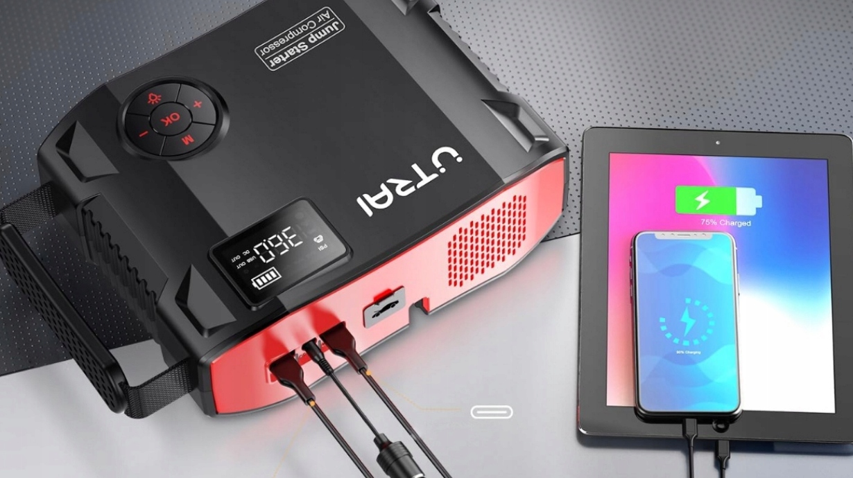 UTRAI Jstar 5 z — это портативный блок питания с пусковым устройством, который может помочь вам в чрезвычайной ситуации. Кабели иметь не обязательно, ищешь блок питания, достаешь УТРАИ из бардачка, подключаешь к аккумулятору, включаешь и все, без чьей-либо помощи. Оснащен функцией Quick Charge 3.0, то есть быстрой зарядкой, позволяющей заряжать планшет, телефон, наушники или другое устройство.