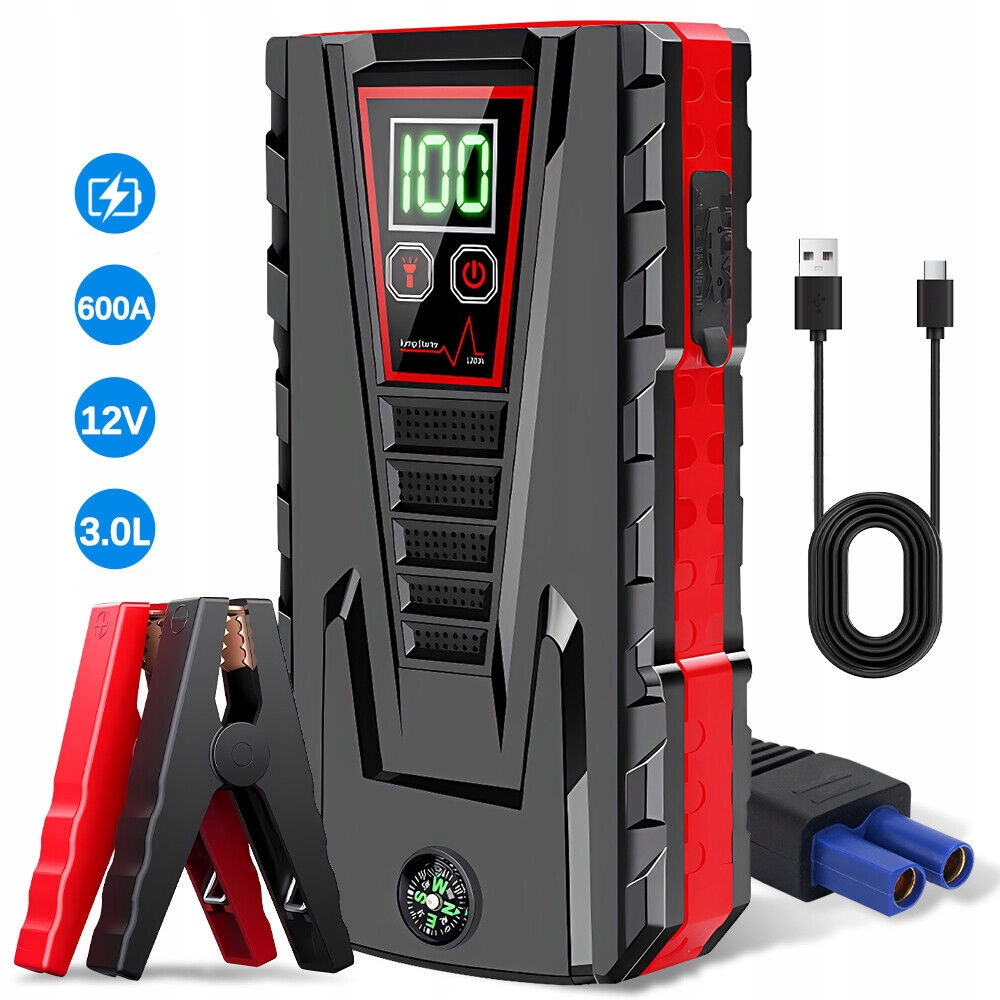 ПОРТАТИВНЫЙ СТАРТЕР POWERBANK ДЛЯ АВТОМОБИЛЯ 12 В С ЗАЖИМАМИ И USB
