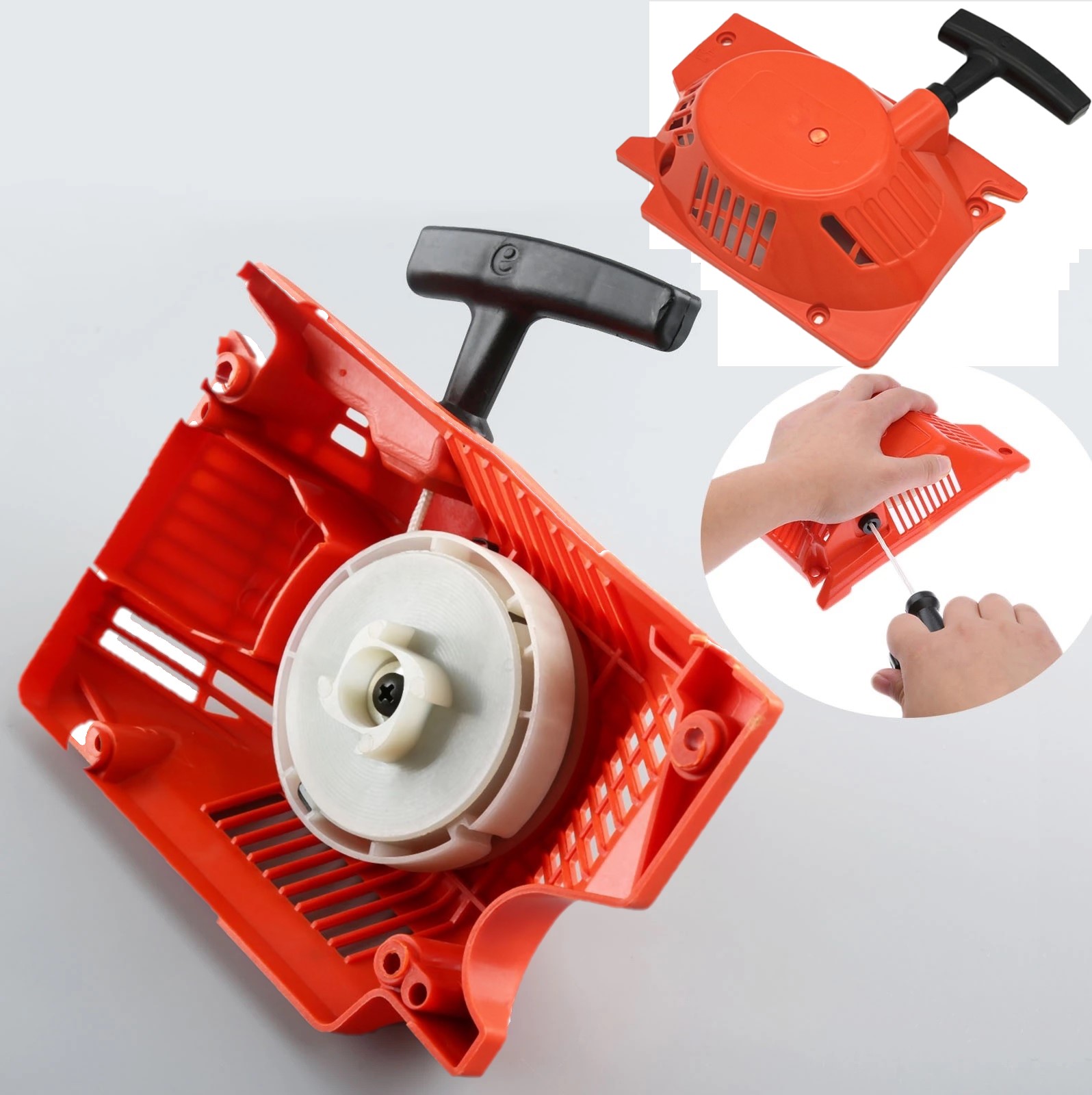 Стартер, пусковой съемник с плавным пуском для пил и бензопил. Благодаря поддерживающей пружине обеспечивается плавный пуск двигателя без рывков.