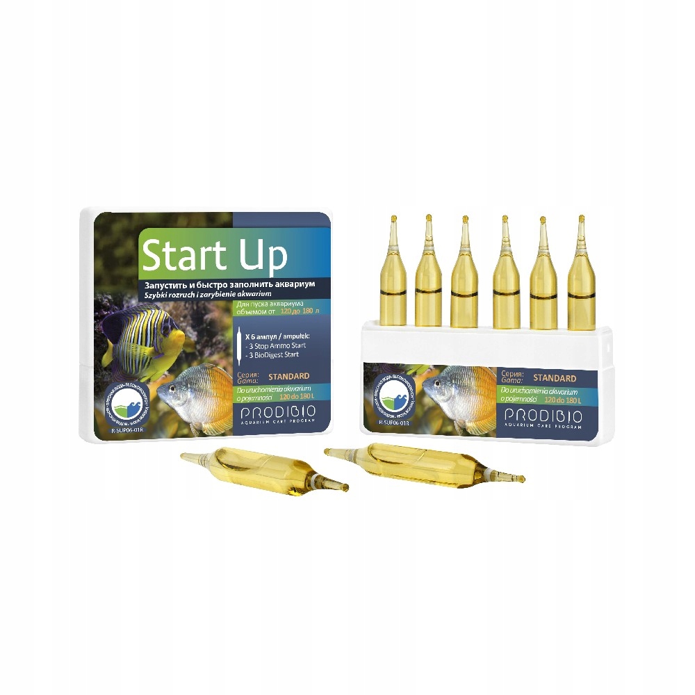 START UP содержит STOP AMMO START и BIODIGEST START в одной упаковке. Комплект облегчает быстрый запуск процесса биологической фильтрации и позволяет в течение нескольких часов поместить рыбу в аквариум.