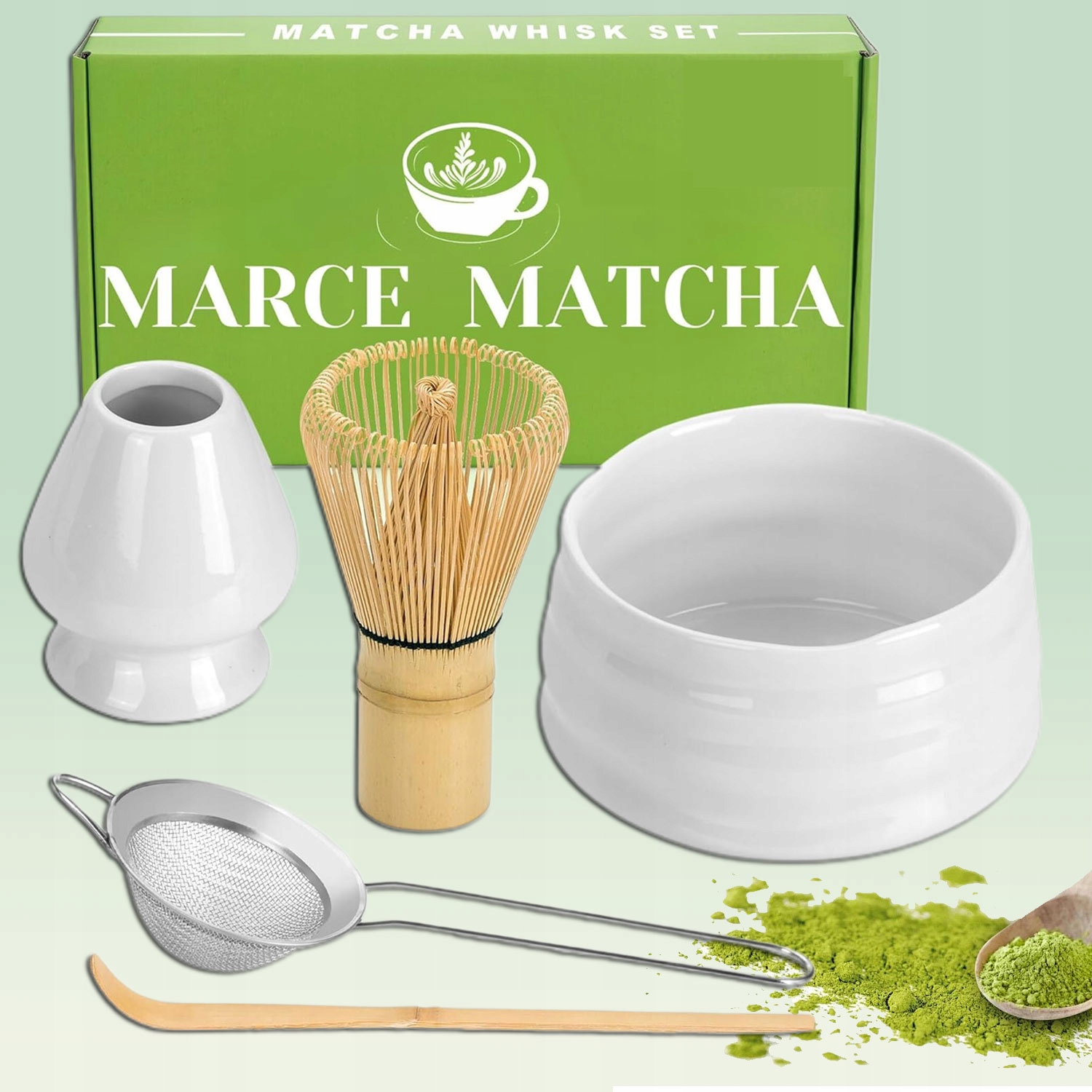 🍃🍃 Идеальный подарочный набор с Matcha - вам определенно понравится этот красивый набор микширования Matcha. Этот Matchy Set - отличная форма, чтобы удивить любого любителя Matcha. Заслужить это подходящий набор, который заставит вас чувствовать себя особенно каждый день. Этот набор смешивания матехки и чаши включает в себя матех, миску с матехкой с розеткой, материальное ситечке, матча и стойку для миксера матча.