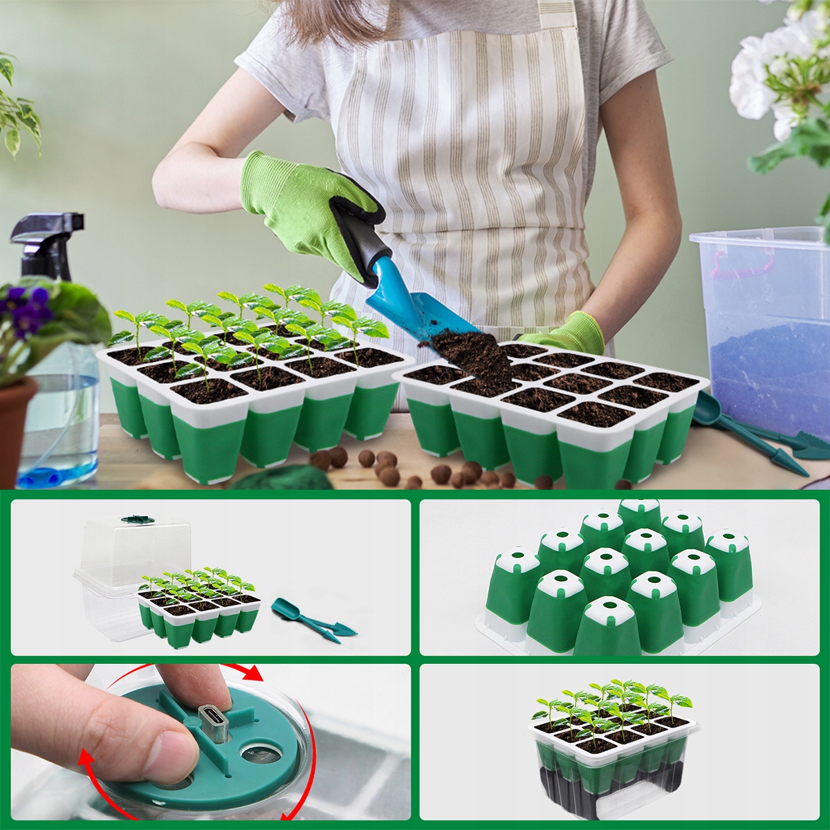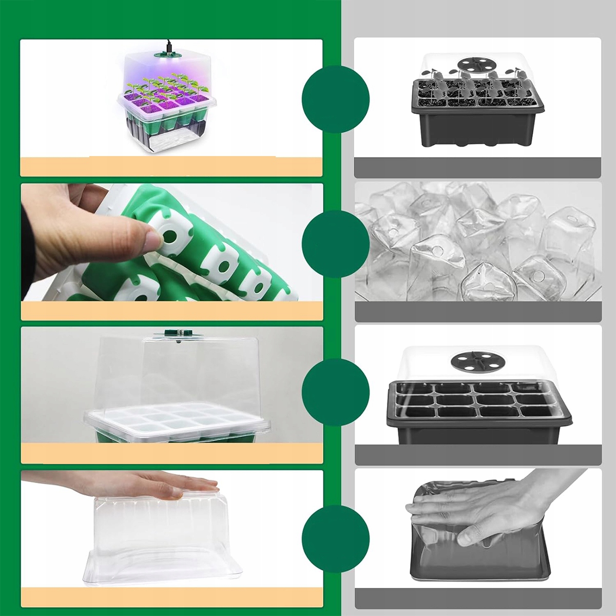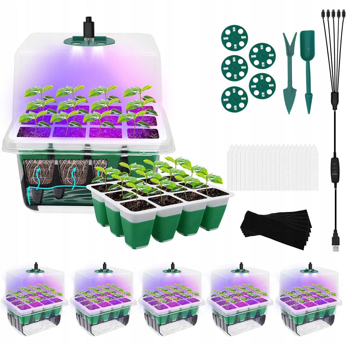 🌱Лоток для рассады для теплицы со светодиодной подсветкой, 5 штук по 60 ячеек, мини-теплица с автополивом, многоразовые силиконовые лотки для проращивания семян для посева семян в помещении🌱