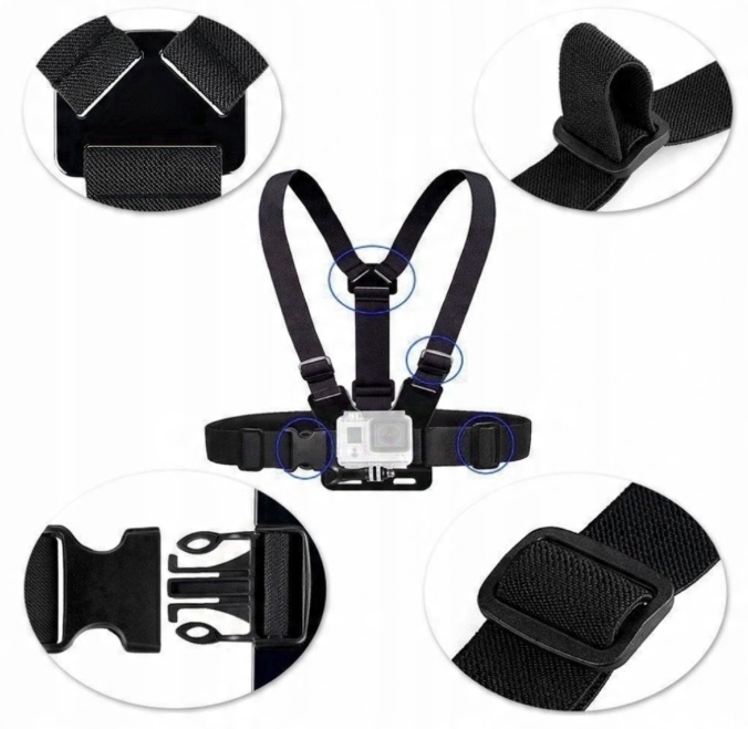 Ремень позволяет закрепить камеру GoPro на груди . Их могут носить как женщины, так и мужчины, люди с небольшой фигурой и люди хорошего телосложения. Все это благодаря широкому диапазону регулировок и высокой гибкости крепежных ремней.