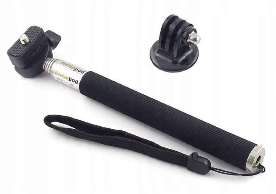 Стрела, или палка для селфи, позволяет регулировать расстояние камеры от элемента, до которого она находится. прилагается. Благодаря ему мы можем записывать, что до сих пор было недостижимо. Монопод в основном изготовлен из алюминия. На одном конце имеется подвижная головка со стандартной резьбой 1/4" (благодаря переходнику, входящему в комплект поставки). комплект, вы можете установить GoPro). Подвижная головка и регулировка длины позволяют получать изображение в любом положении.