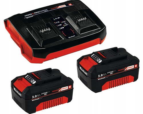 Стартовый комплект аккумуляторов Einhell Power X-Change: 2 аккумулятора (3,0 Ач) и двойное зарядное устройство