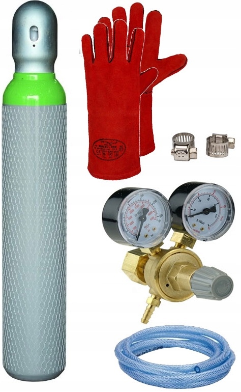 СТАРТОВЫЙ НАБОР ДЛЯ СВАРОЧНЫХ МАШИН MIG/MAG — ЦИЛИНДР, ГАЗОВЫЙ РЕДУКТОР, СВАРОЧНЫЕ ПЕРЧАТКИ.
