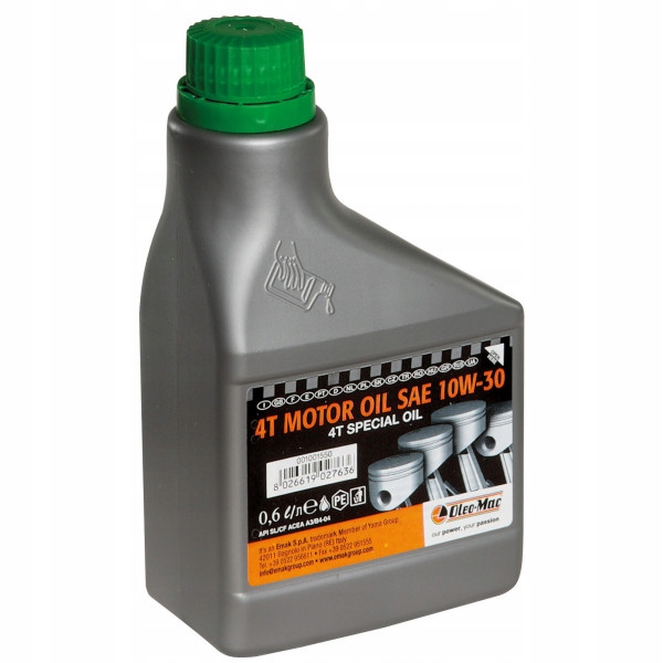 Высококачественное минеральное масло Oleo-Mac SAE10W-30 (600 мл) для четырехтактных двигателей, воздушного и водяного охлаждения, используемого в садоводстве. Масло содержит специальную смесь добавок, которые делают его отличные свойства в качестве моющего средства, диспергирования, антиоксиданта, а также защиты от коррозии и потребления. Превышает спецификацию: API SG/CE, MIL - L - 2104 D, MIL - L - 46152 C.