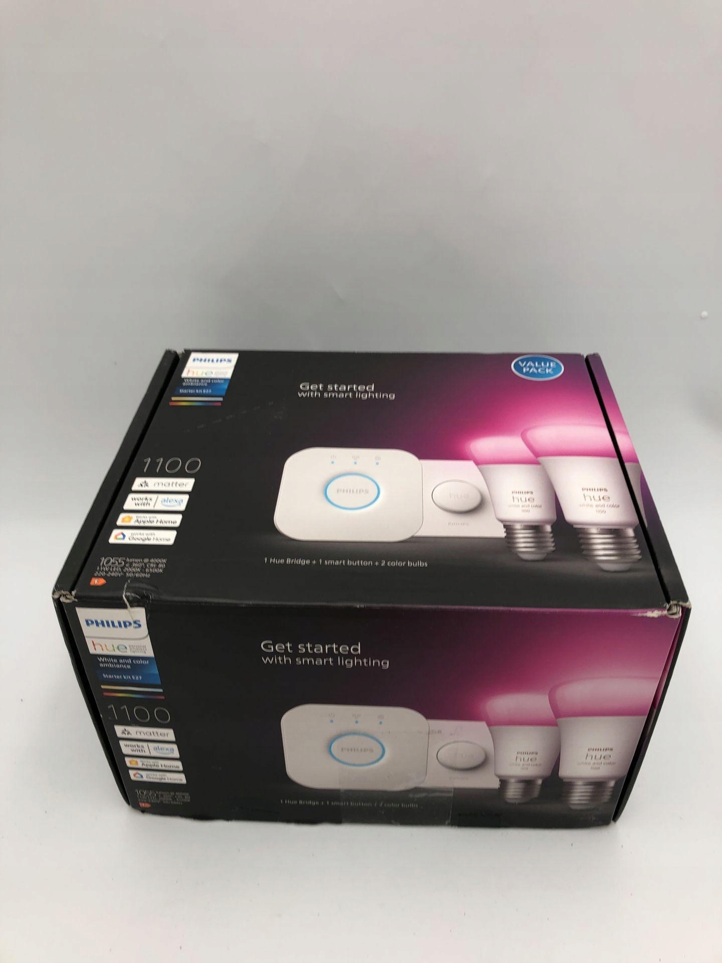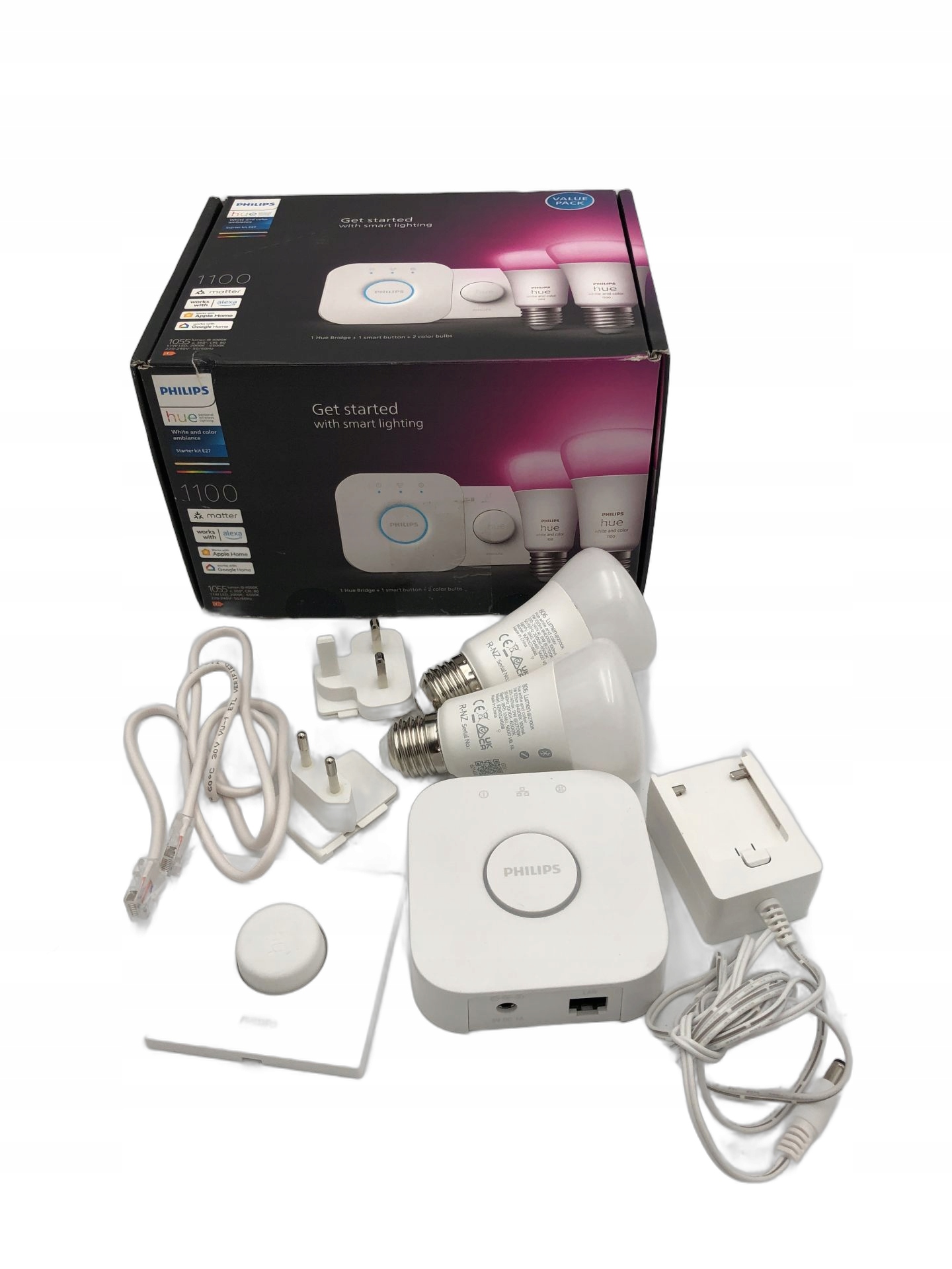 Простая установка: Hue Bridge подключается к маршрутизатору и настраивается в приложении Hue. Добавлены светодиодные лампы Е27, которые подходят к любому патрону Е27.