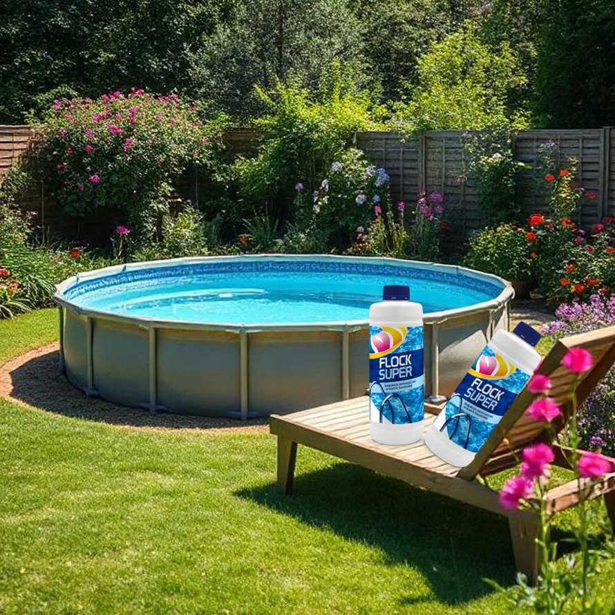 - Flock Super (емкость 1L) - препарат для удаления мутности воды бассейна и получения эффекта кристаллической прозрачно