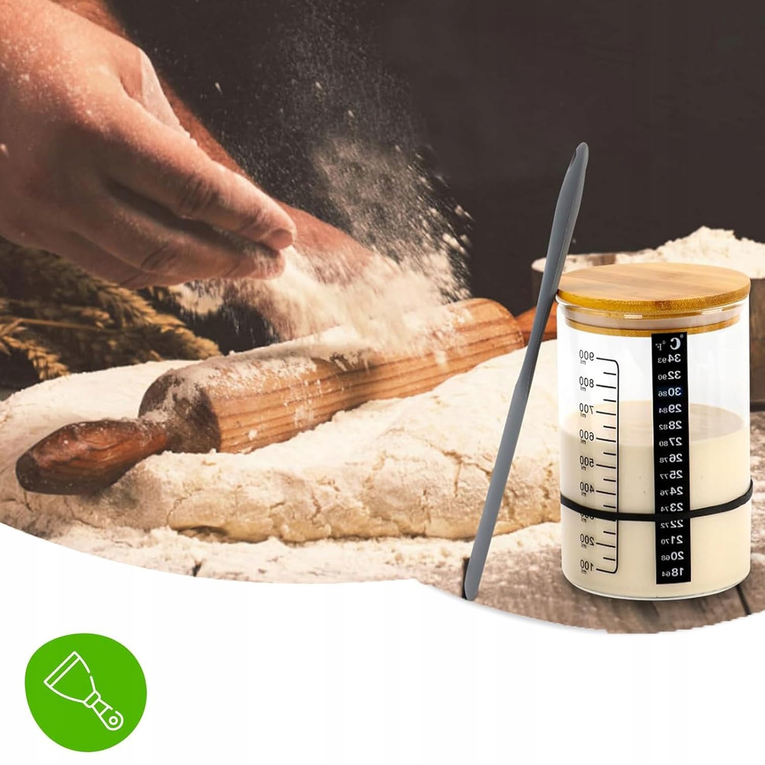 ⭐⭐【Простота в использовании】 Прозрачная банка для закваски поставляется с бумажным термометром, который позволяет легко контролировать температуру и контролировать процесс брожения. Независимо от того, являетесь ли вы новичком или опытным пекарем, наш стартовый набор для закваски — идеальный выбор.