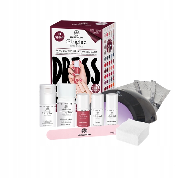 - Маникюрный набор содержит все продукты, необходимые для профессионального результата – после покупки набор можно дополнить всеми цветами Alessandro Striplac Peel или Soak.