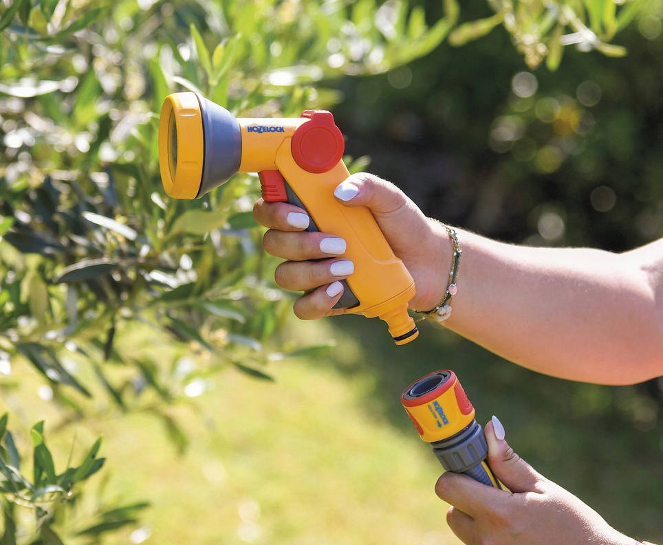 Роторный разбрызгиватель подходит для максимальной площади 177 м² или площадка диаметром 15 метров. Диапазон распыления можно регулировать, увеличивая или уменьшая расход воды в кране. Разбрызгиватель идеально подходит для полива растений и газонов в небольших и средних садах. Кроме того, распылительные форсунки специальной конструкции обеспечивают равномерное распределение воды без образования луж. Легкий пистолет-распылитель идеально подходит для полива цветов и растений в саду или для легких работ по уборке. Он оснащен регулируемым контролем потока и эргономичной ручкой, которую можно зафиксировать для непрерывного распыления.