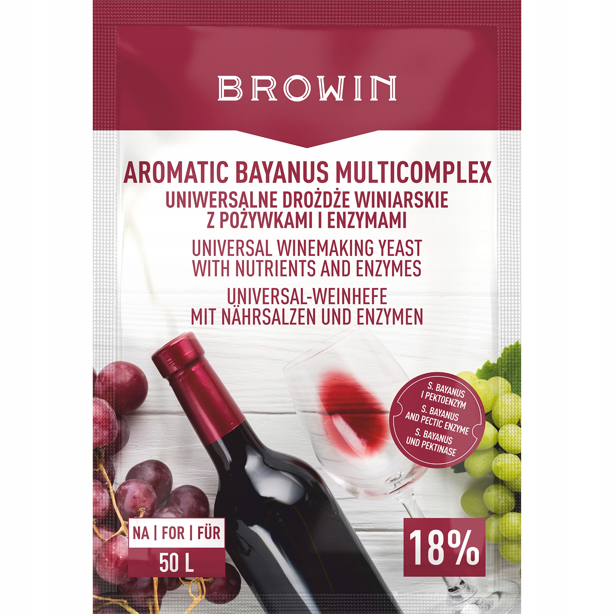 Ароматический мультикомплекс Bayanus представляет собой смесь благородных винных дрожжей видов Bayanus и Cerevisiae и тщательно отобранных питательных веществ, витаминов и пектолитических ферментов, благодаря которым вы можете легко приготовить любой тип вина с ярко выраженным ароматом.