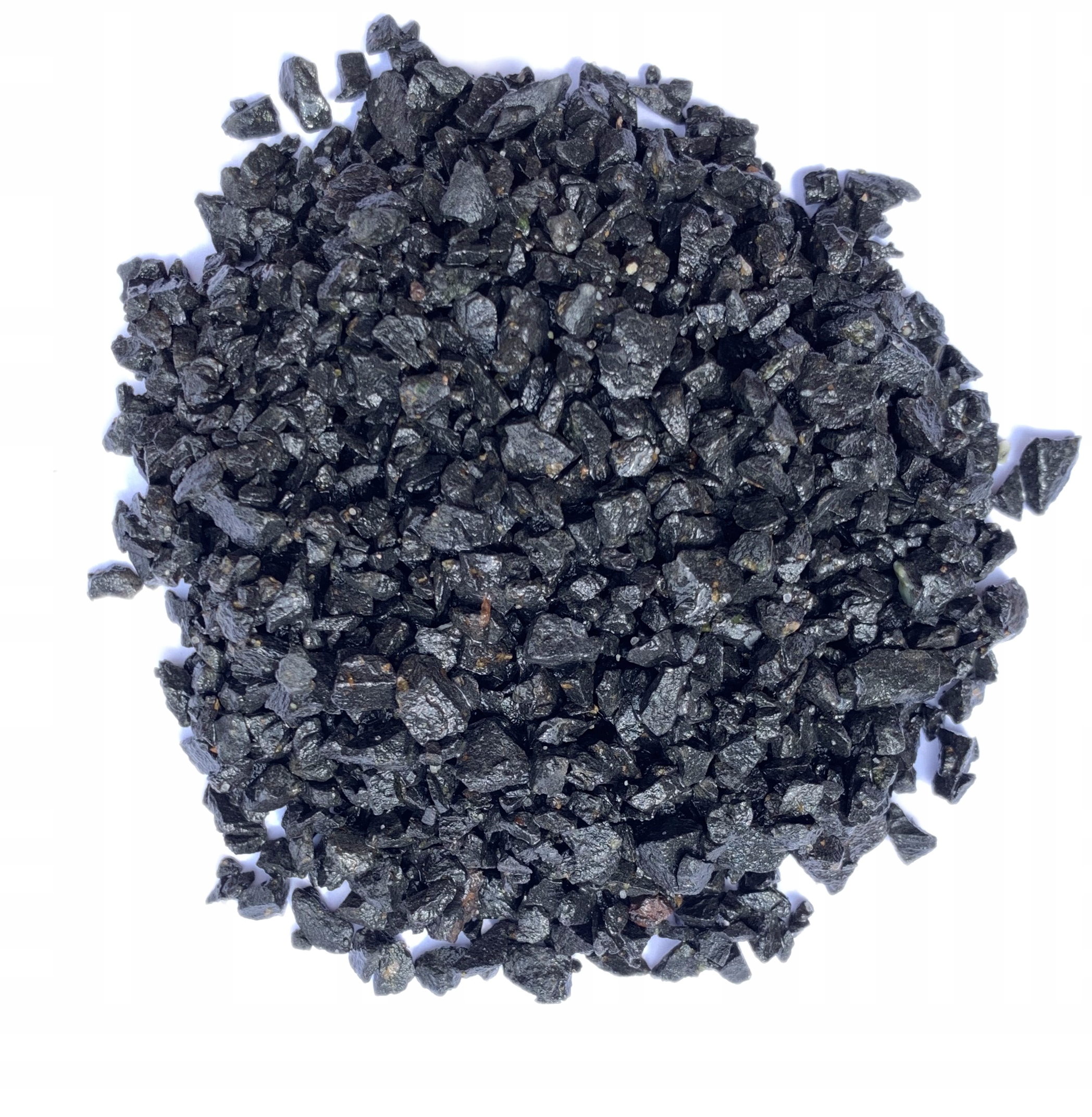 Базальтовый гравий, переливающийся на солнце. Упаковано в специальные термосвариваемые пакеты. Фракция: 1-3 мм
