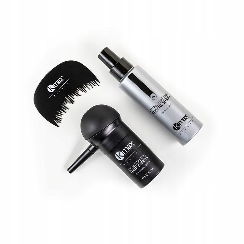 Kmax - уникальное косметическое средство для утолщения волос, содержащее тонкие волокна 100% кератина (строительный материал для волос). Благодаря использованию уникальной технологии электростатических полюсов Włos-Microfibers Kmax микроволокна объединяются, создавая эффект естественных волос. Кмакс действует моментально, а эффект утолщенных волос без видимых признаков облысения сохраняется до следующего мытья головы. Kmax 15g хватает примерно на 30 применений, также у нас есть следующие упаковки: Kmax 5g, Kmax 32g, Kmax 64g. Также приглашаем вас посмотреть видеоролики, показывающие, как работает Kmax — мы также размещаем видео наших клиентов.