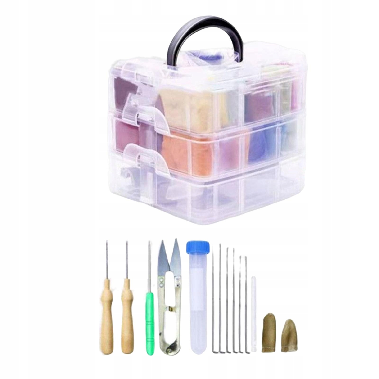 : Набор игольных инструментов различных цветов, включая 24 иглы для шерсти (5 г), ножницы, иглу для валяния, бутылку на подушечке, пенопластовую подушечку, небольшой клей-карандаш, подкладку для пальцев, шило. Шерстяная ровница пушистая, мягкая и регулируется по размеру. Храните устройство в трехслойном наборе, в ящике для хранения, чтобы все было под рукой для доступа, совместного использования и сортировки. Подходит для игольчатого фетра, мокрого фетра, устройства для использования, устройства, предназначенного для использования, изготовления инструментов, переноса, ткачества, украшений и т. д. Идеально подходит для детей и взрослых на дни рождения, Рождество, юбилеи