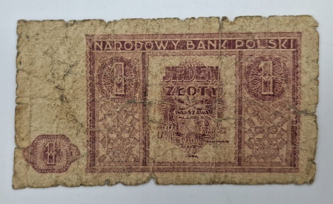 Старая коллекционная банкнота 1 злотый Польша 1946 года.
