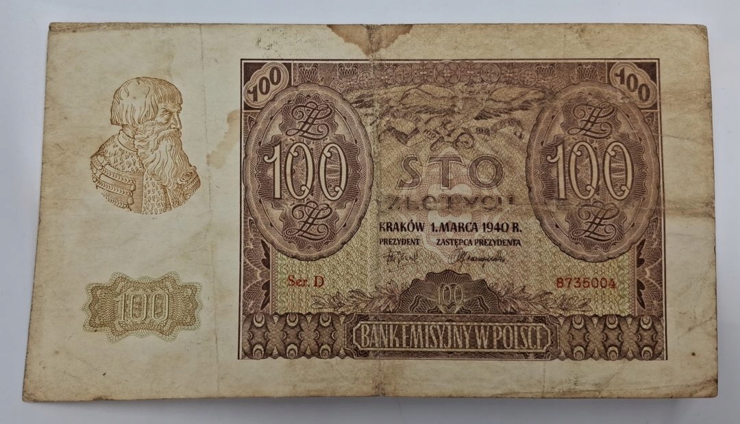 Stary Banknot kolekcjonerski Polska 100 zł 1940