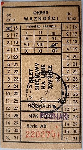 STARY BILET SIECIOWY NA LINIE ZWYKŁE - NORMALNY - MPK POZNAŃ - PRL !