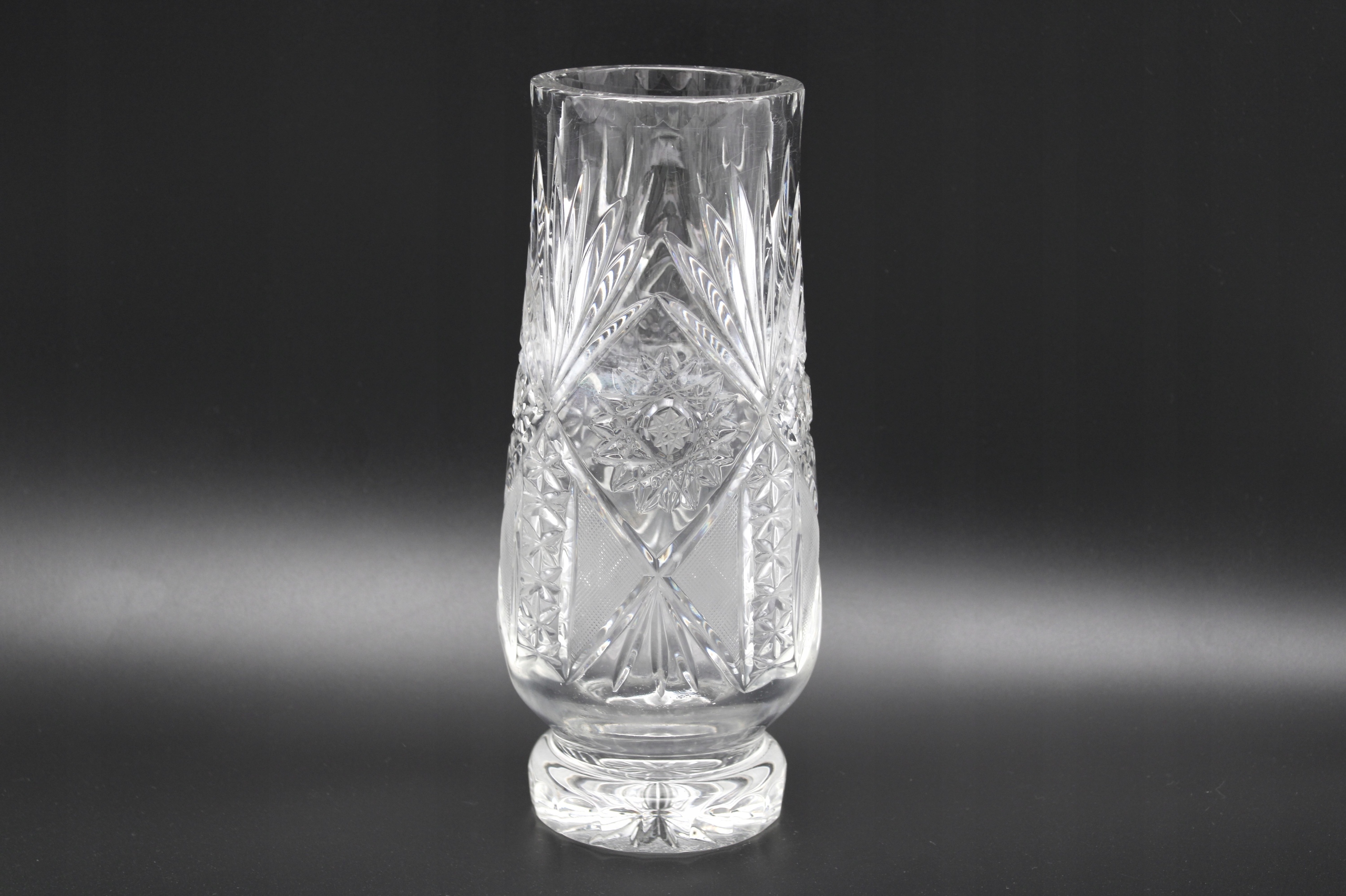 STARY CIĘŻKI WAZON KRYSZTAŁOWY RĘCZNIE SZLIFOWANY
