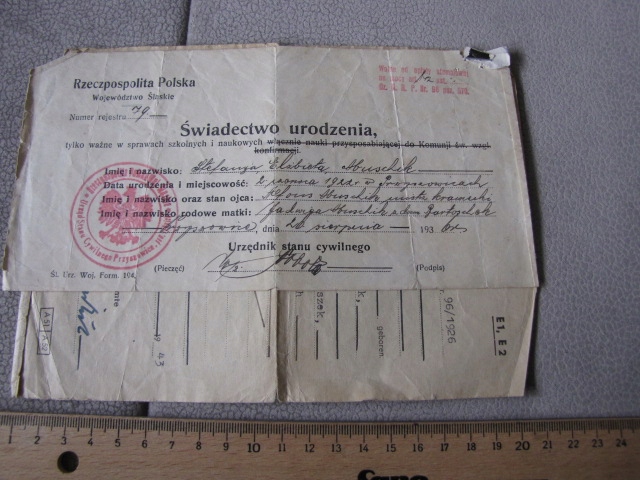STARY DOKUMENT AKT URODZENIA PRZYSZOWICE PREISWITZ POLSKI NIEMIECKI ODPIS