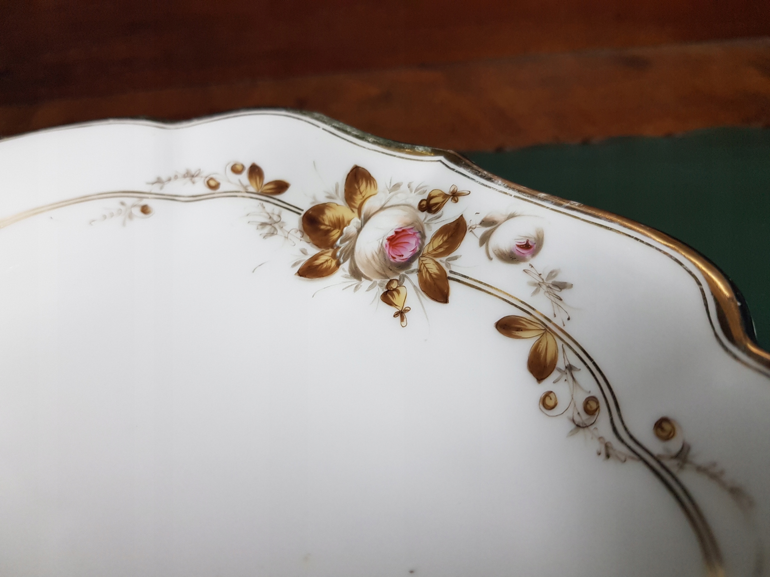 Предмет аукциона - старинное кабаре.Ручная роспись.Позолота слегка потерта.Есть небольшие утраты на постаменте (фото).Подпись.