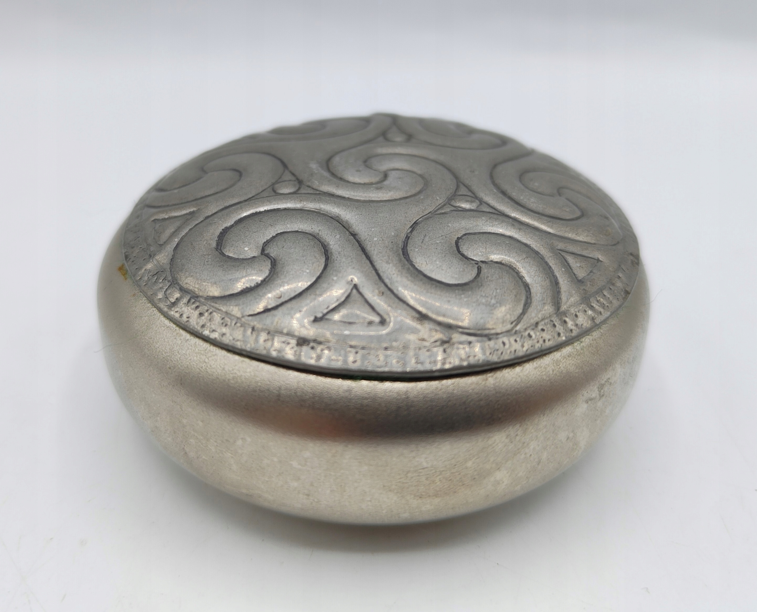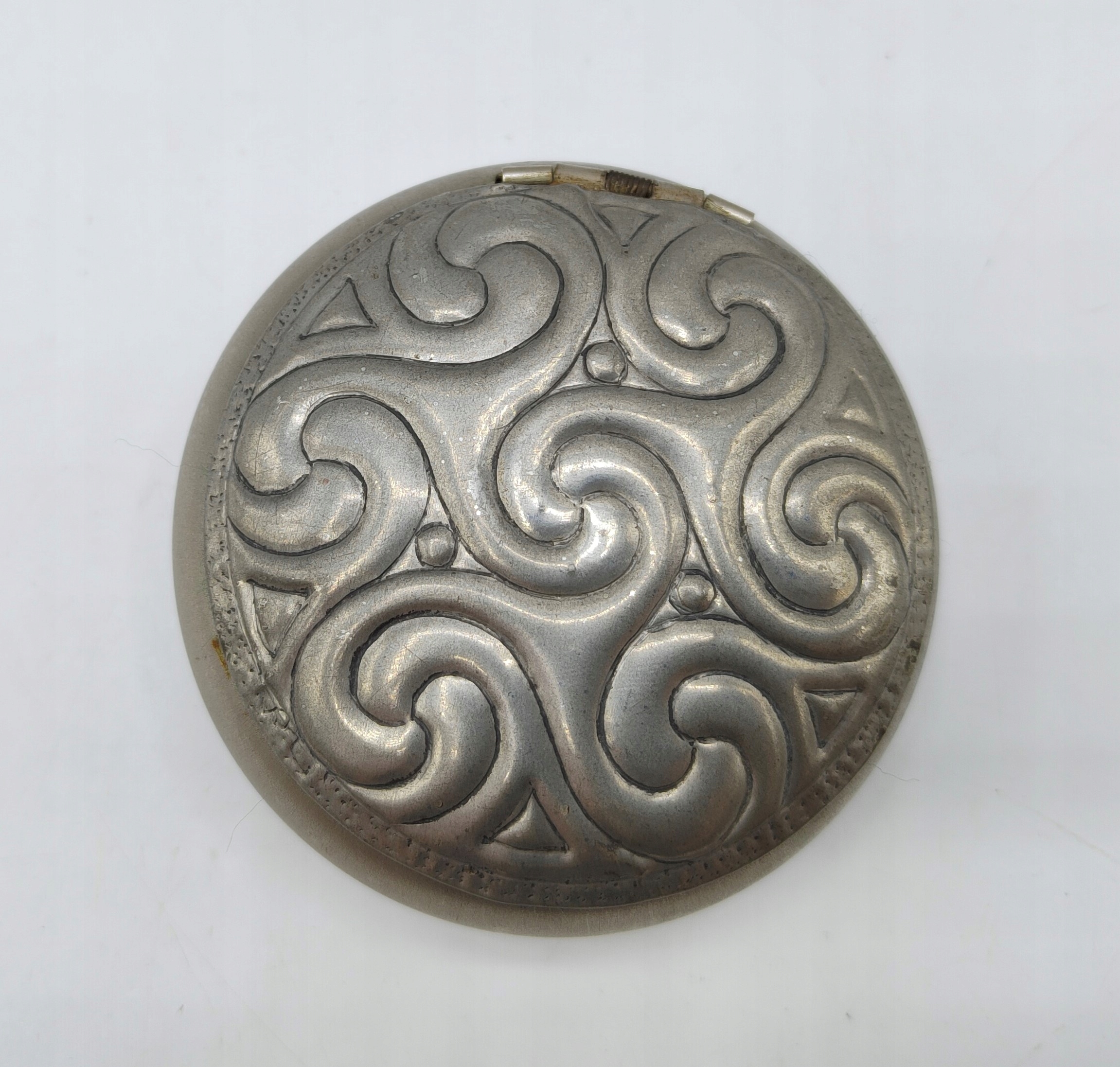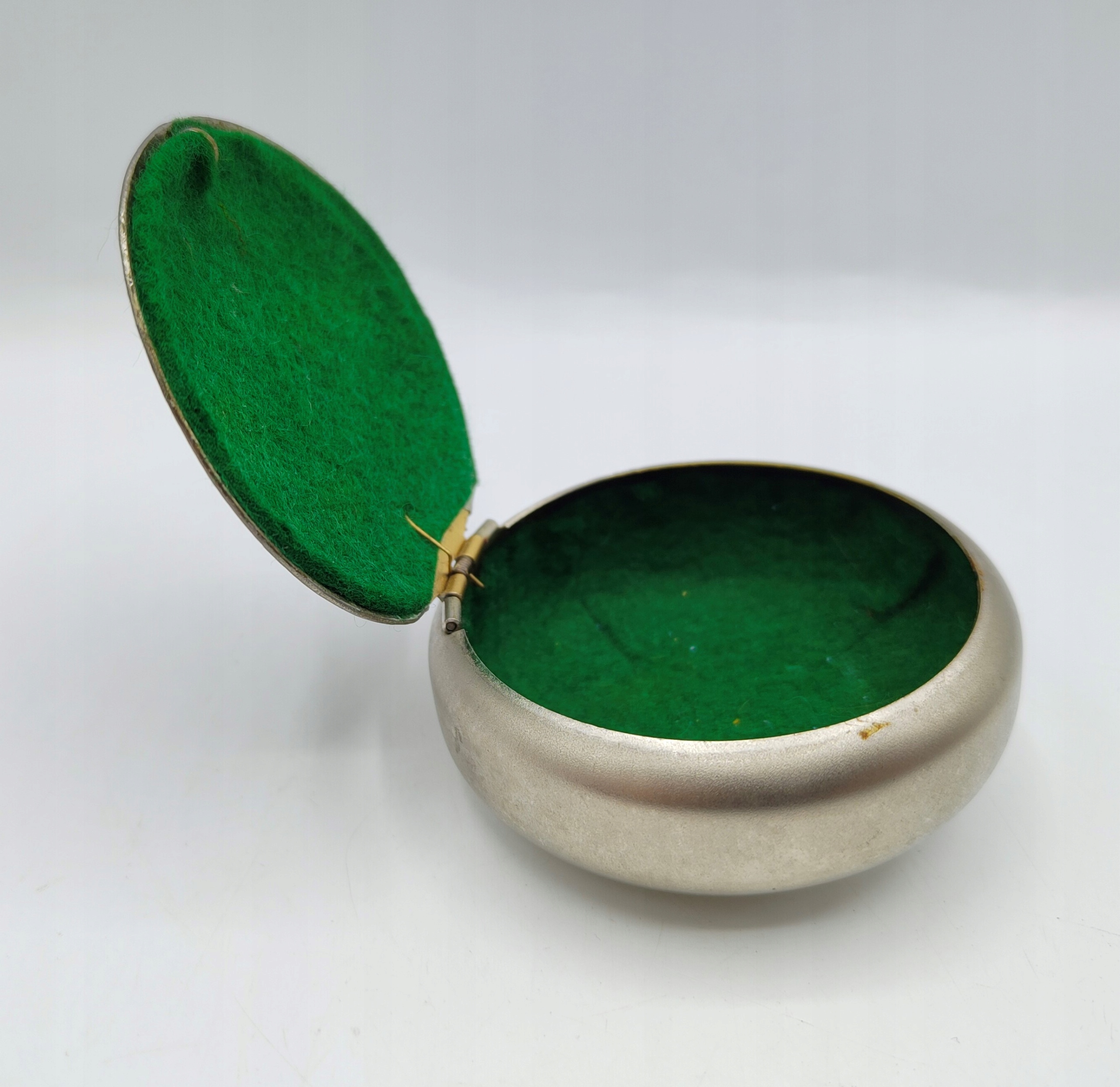 STARY metalowy ciekawy pojemnik wyścielony materia