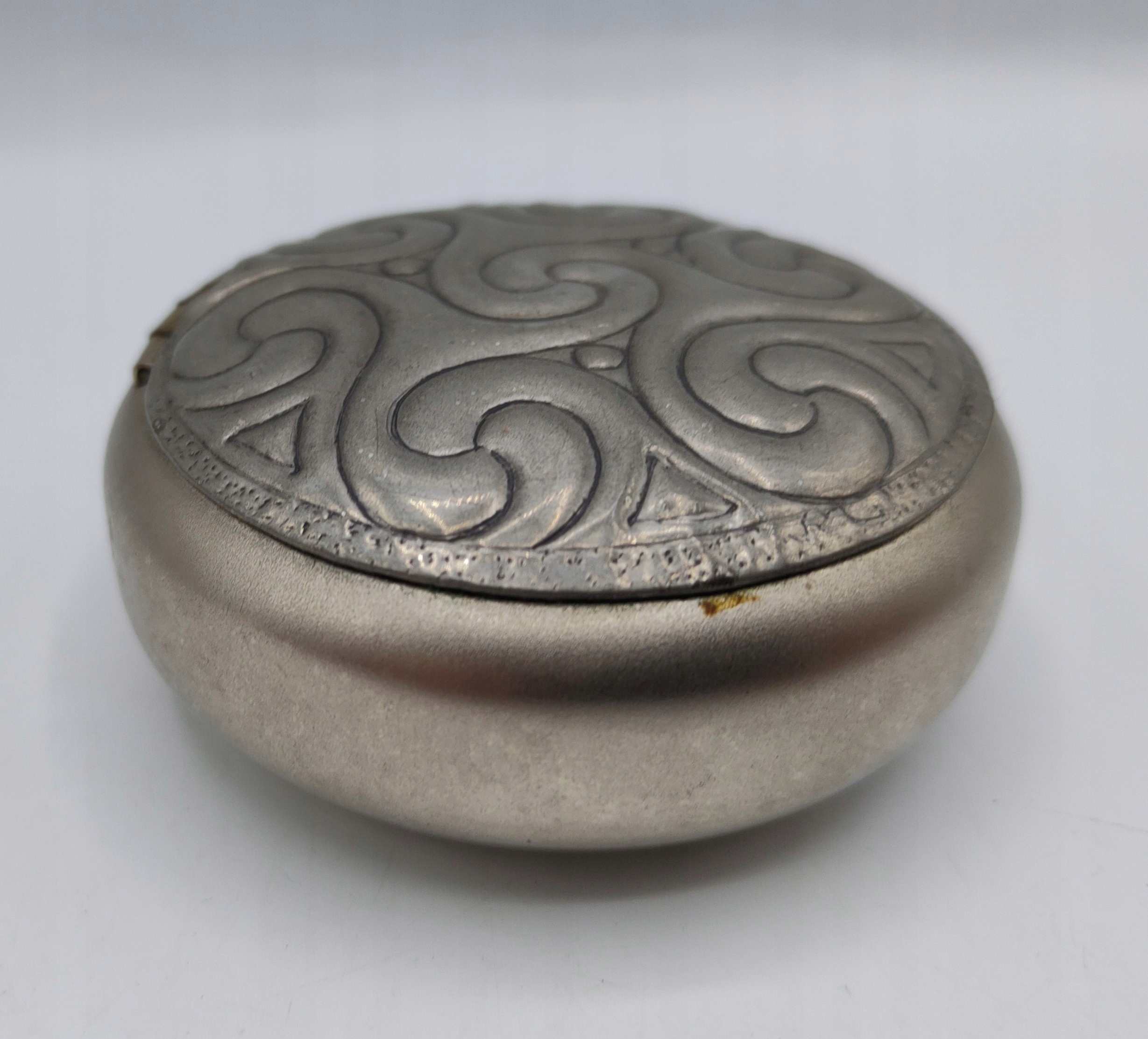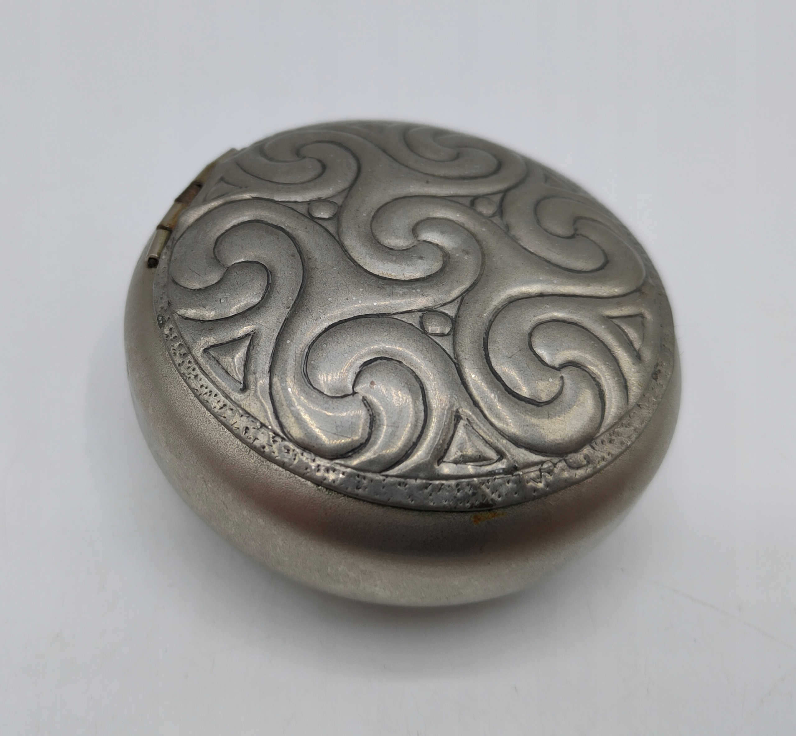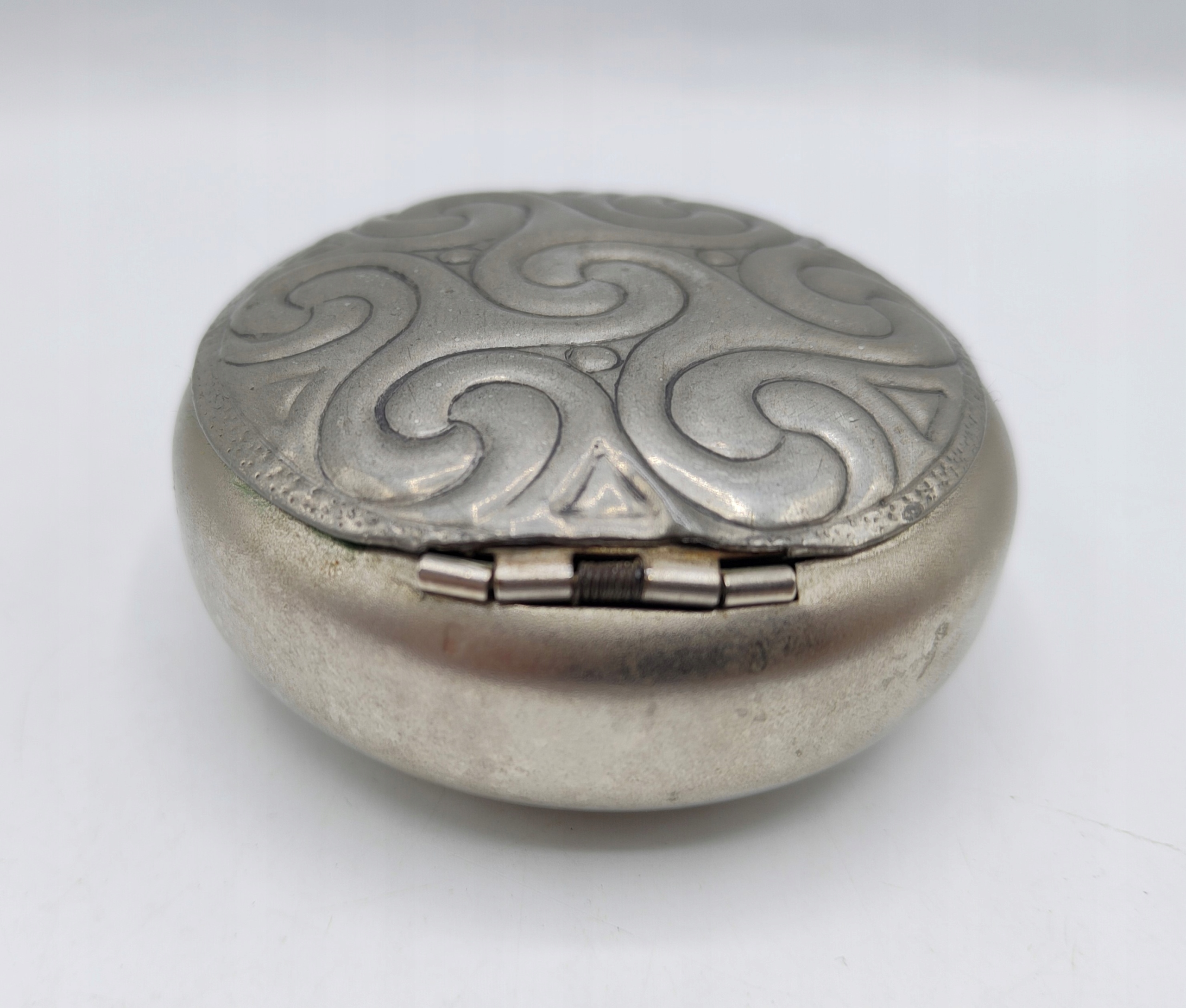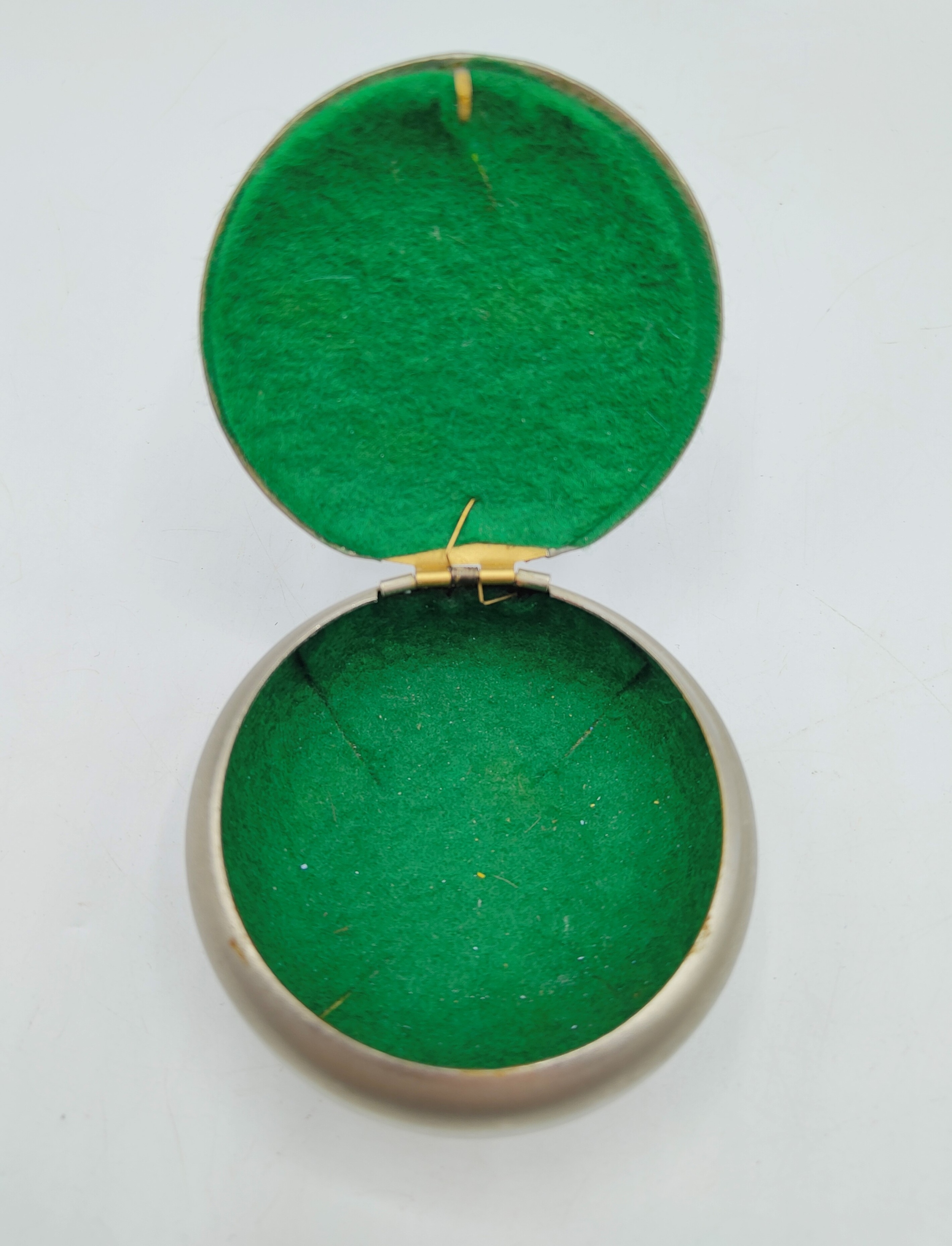STARY metalowy ciekawy pojemnik wyścielony materia
