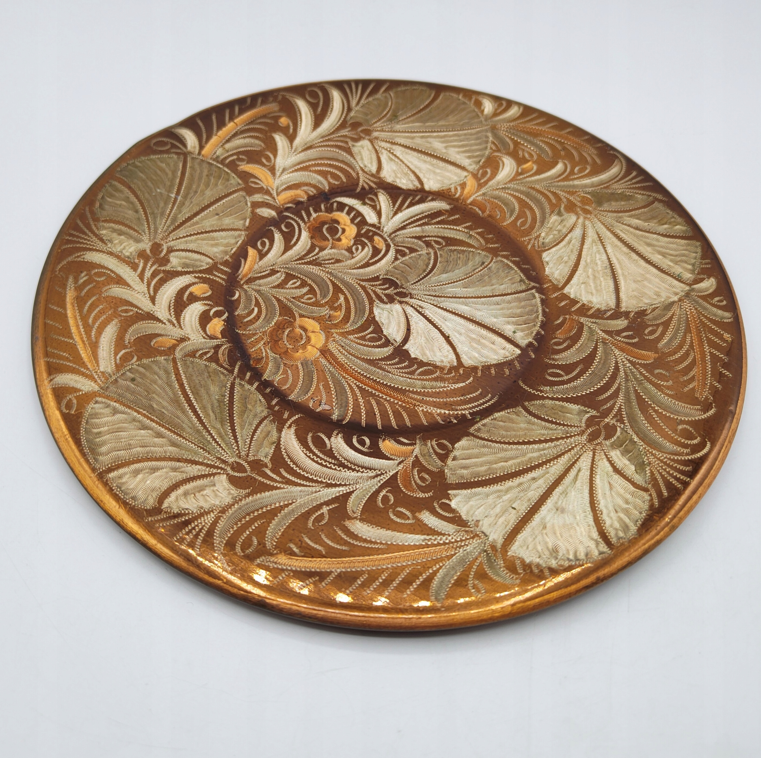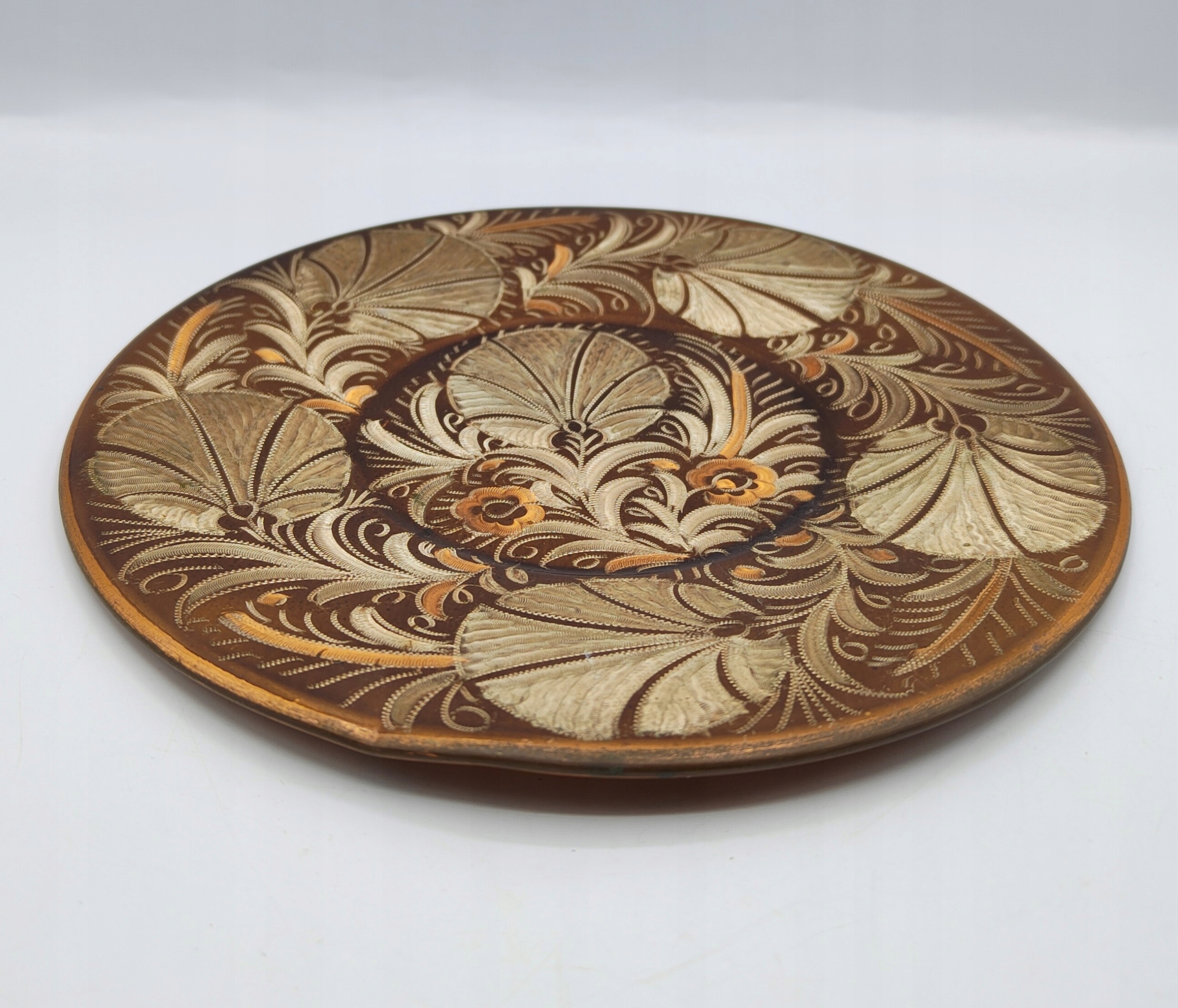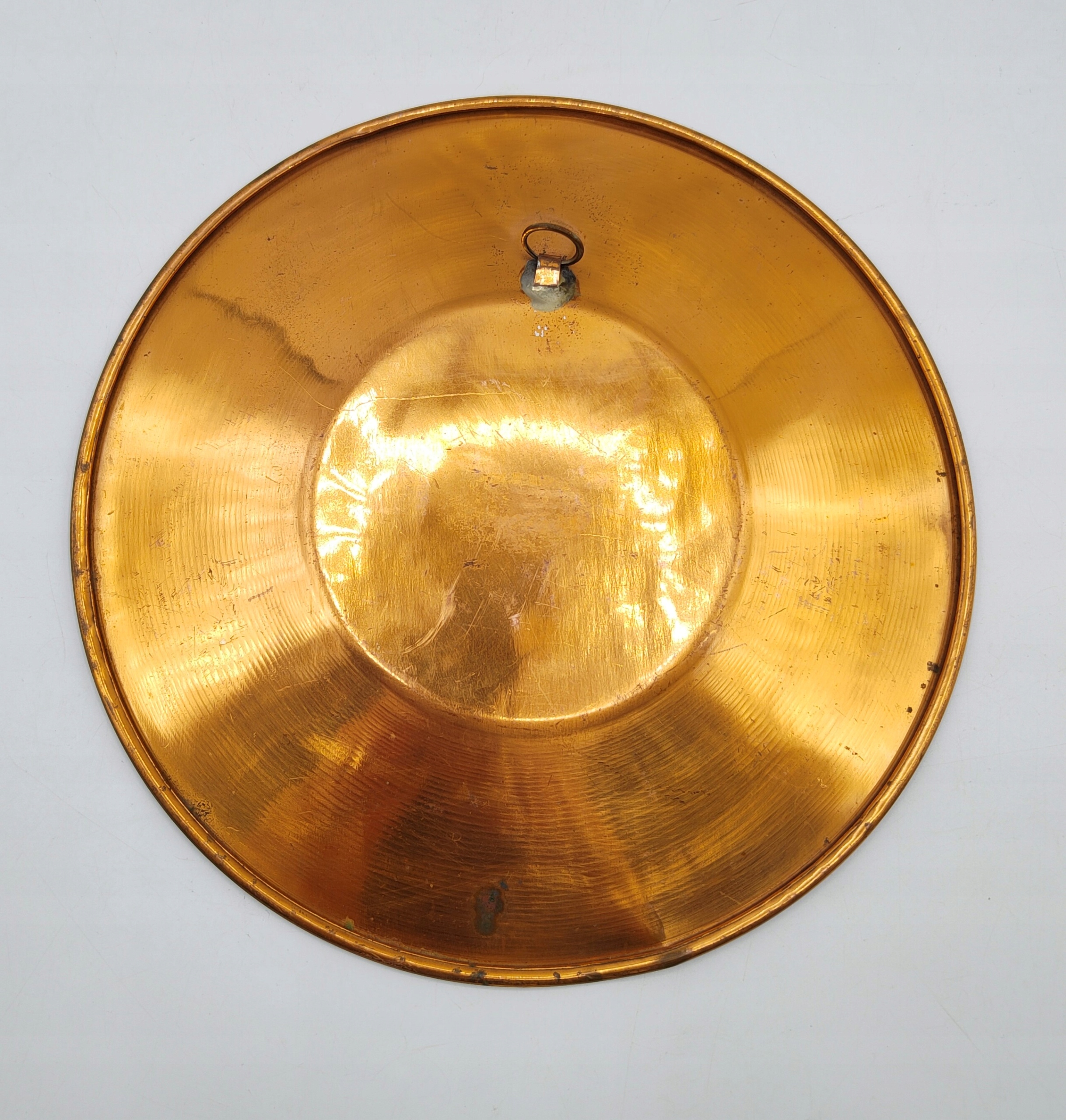 STARY miedziany grawerowany ozdobny talerz 12,5 cm