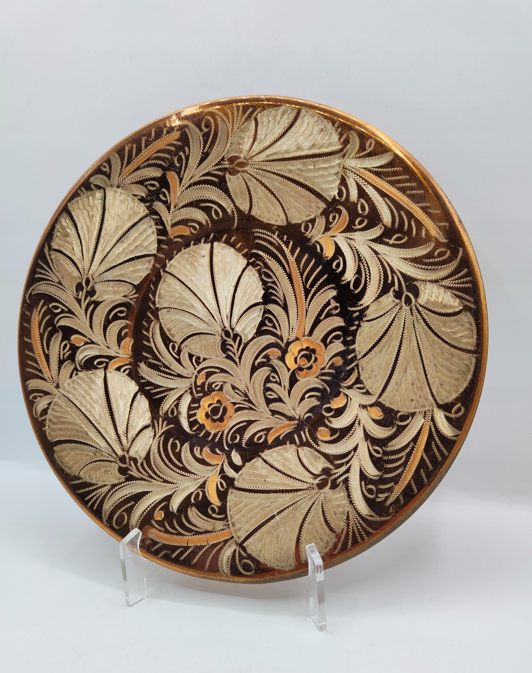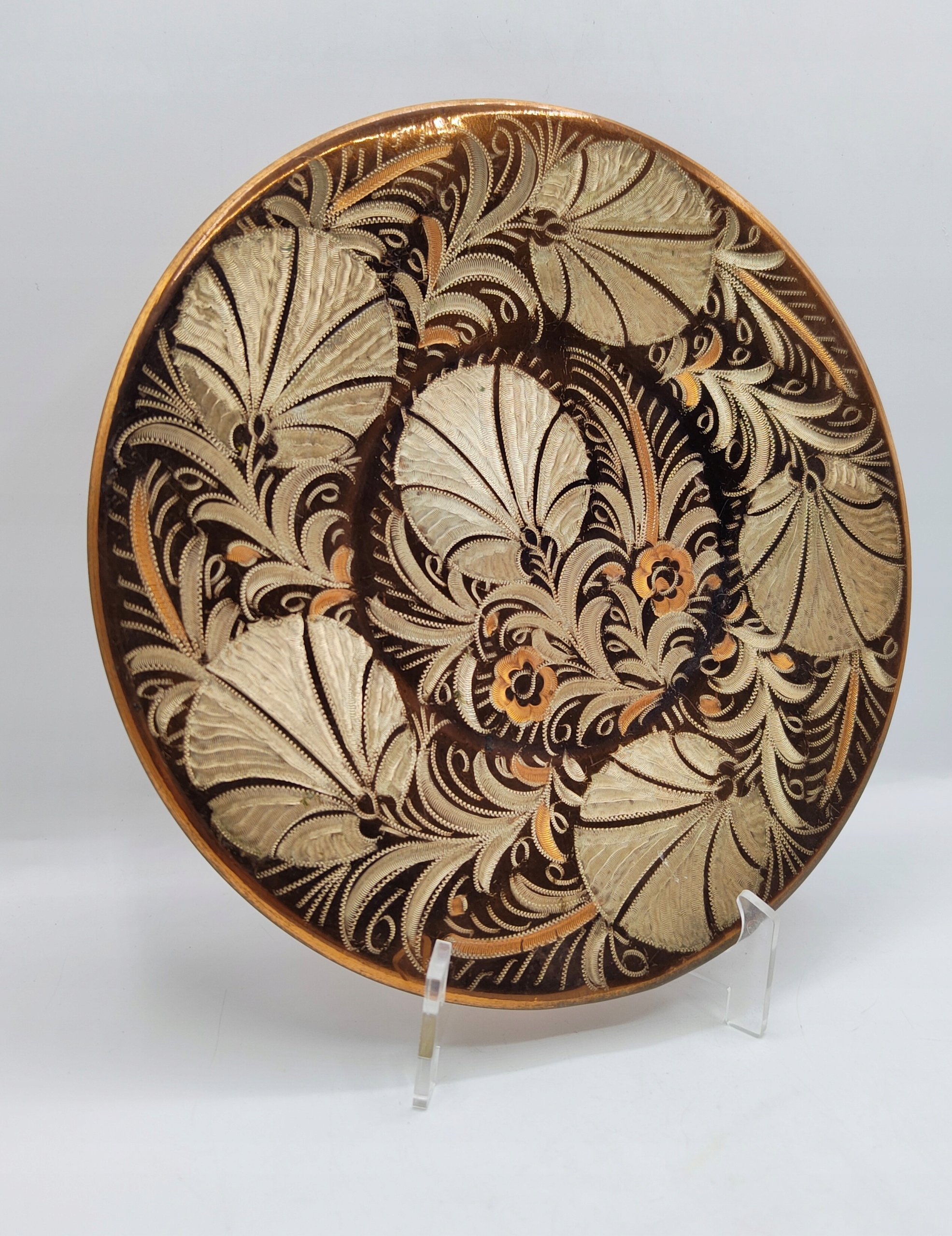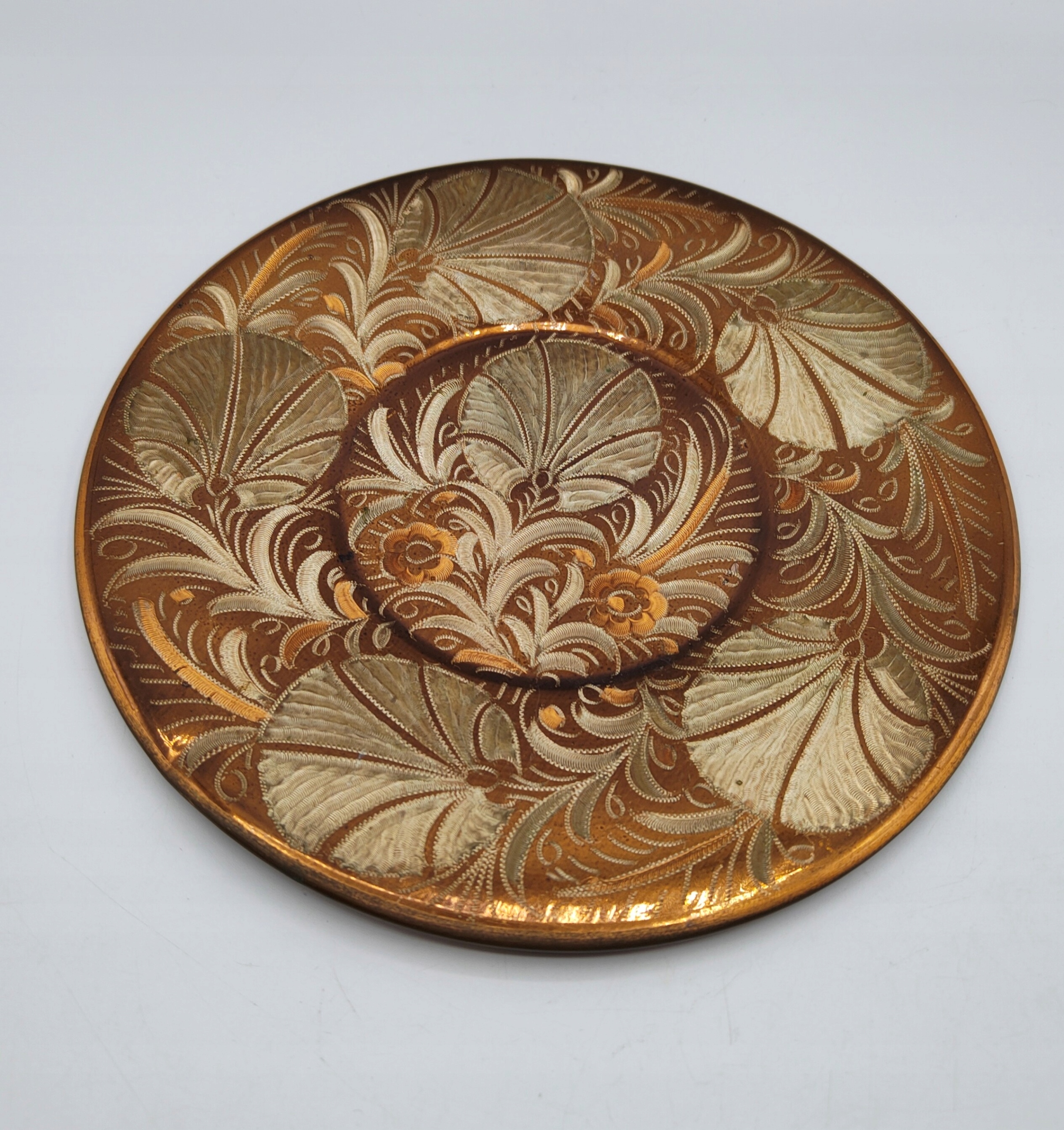 STARY miedziany grawerowany ozdobny talerz 12,5 cm