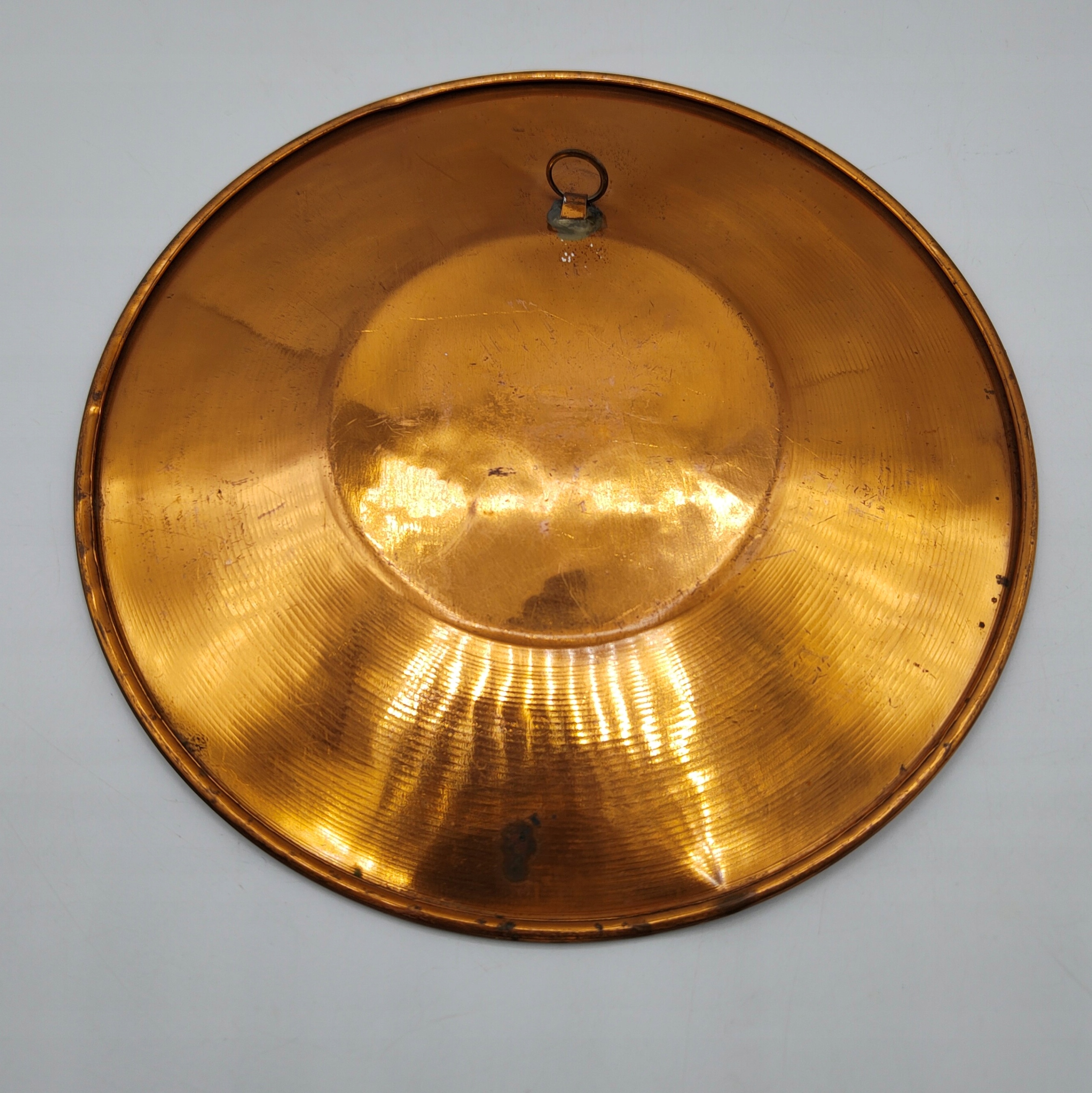СТАРАЯ медная декоративная тарелка с гравировкой 12,5 см