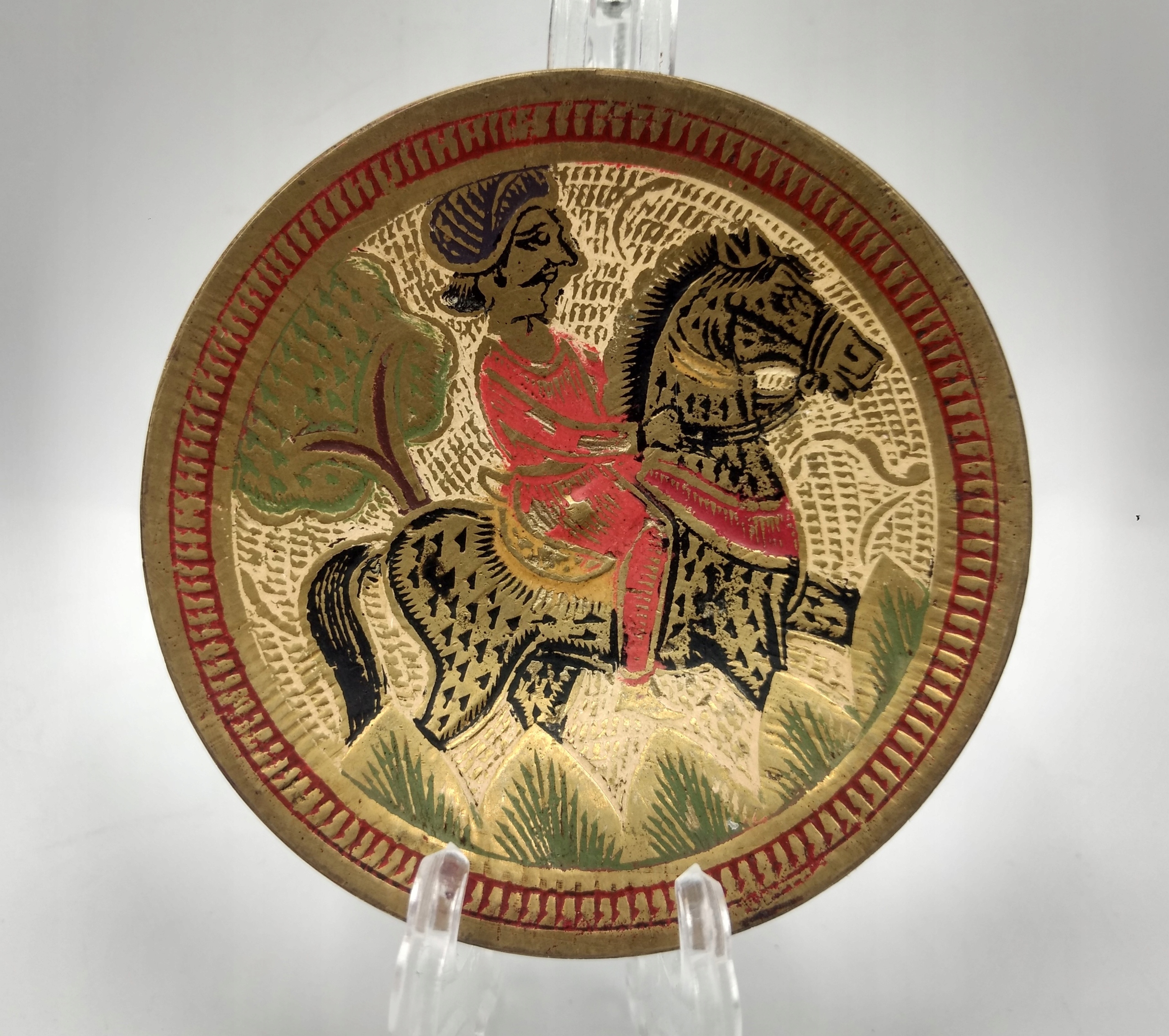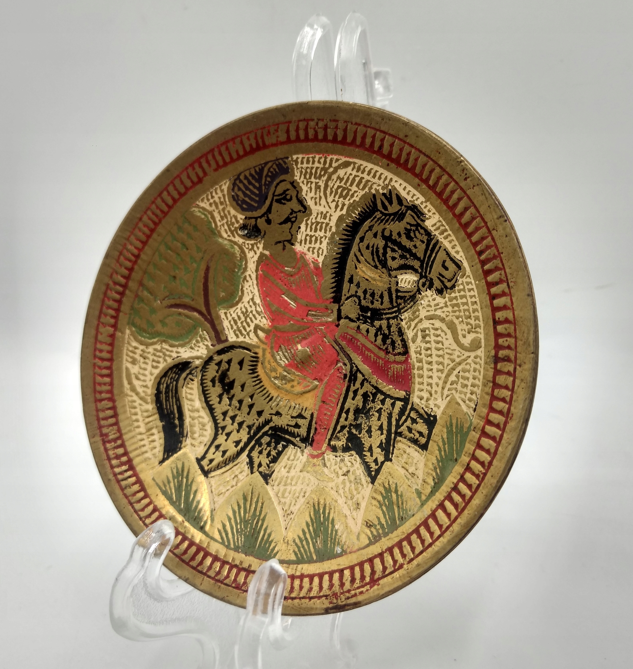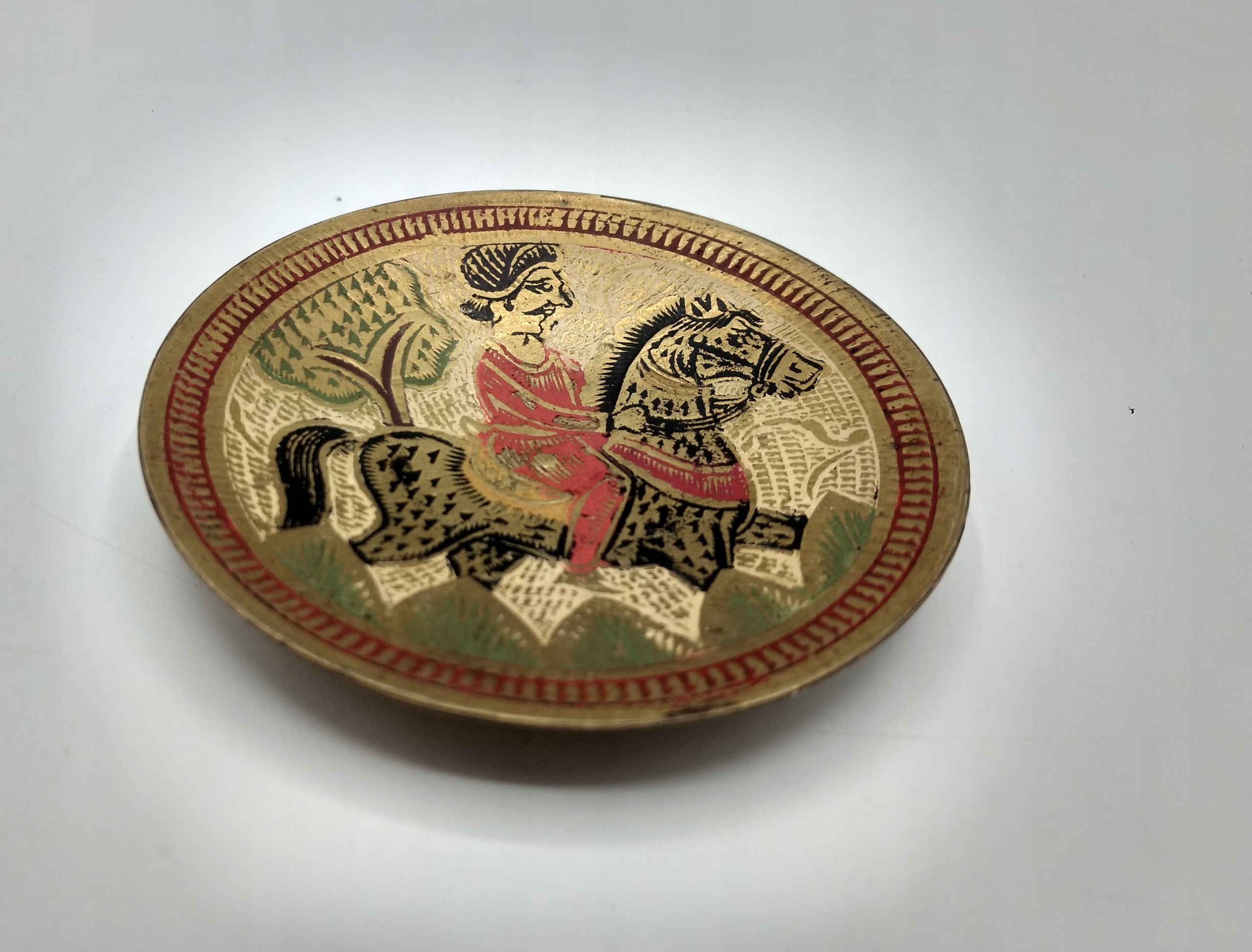 STARY mosiężny talerzyk lakier komórkowy jeździec