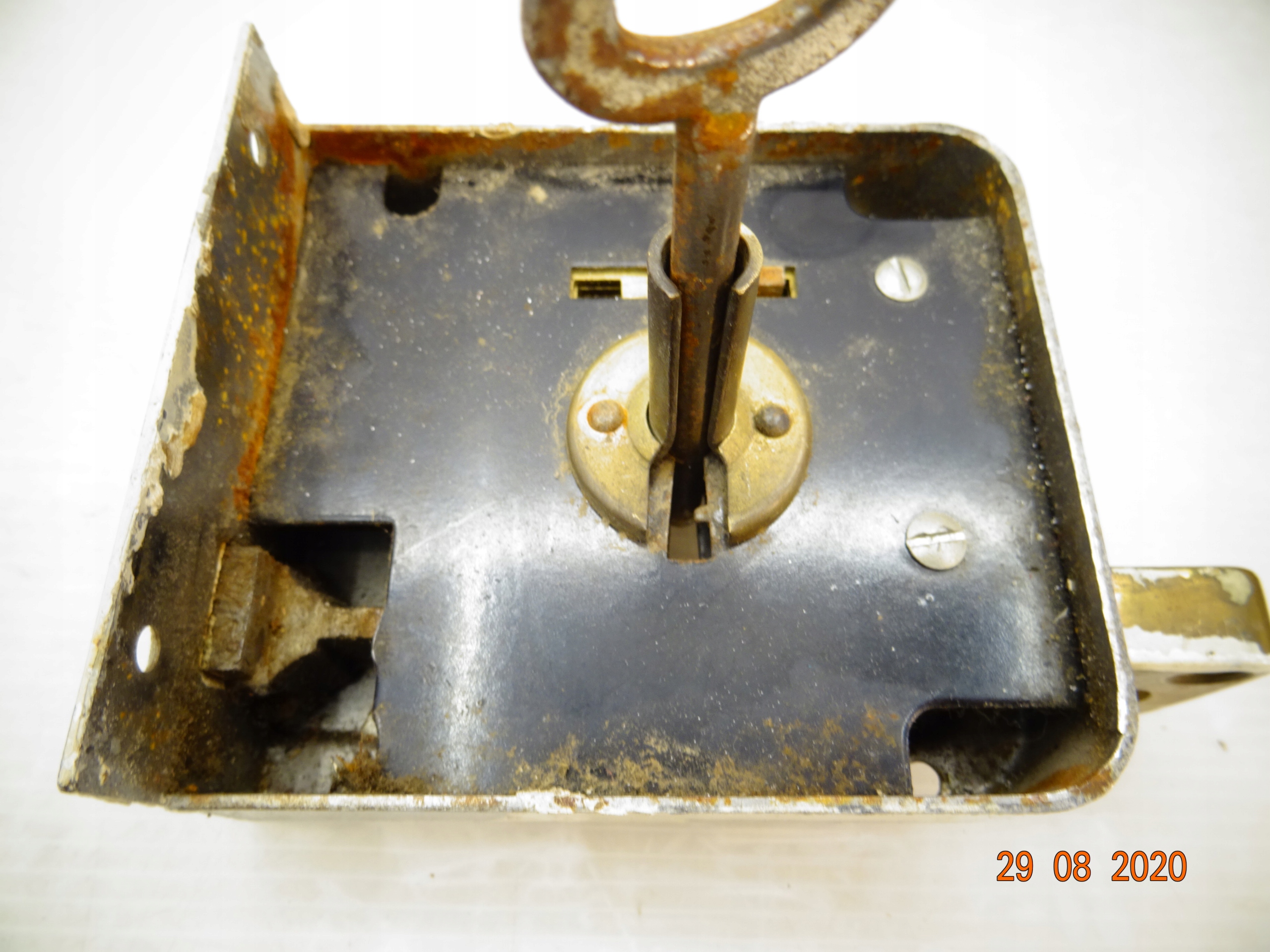 Stary poniemiecki zamek kasetowy pudełkowy Z kluczem przedwojenny