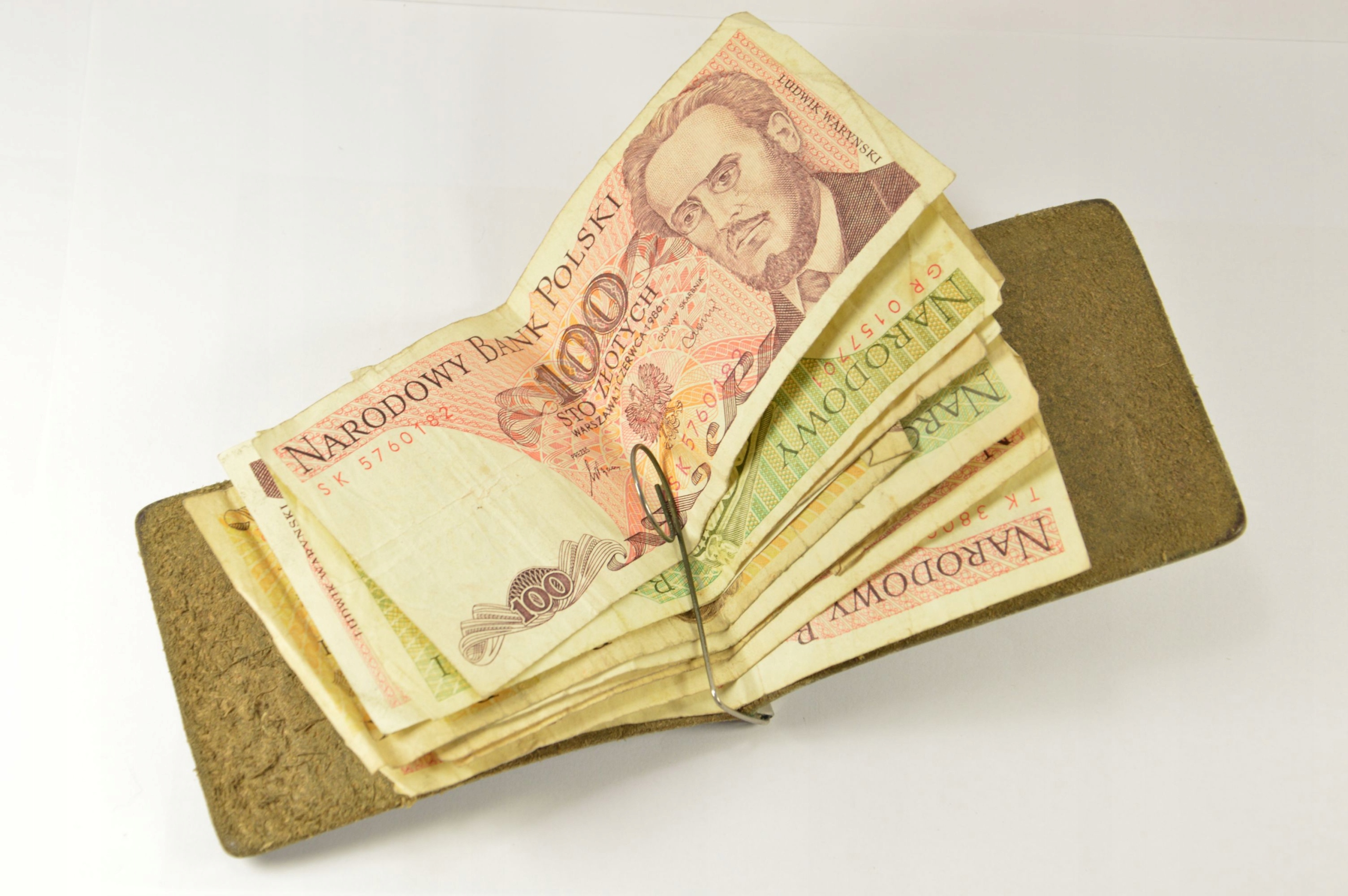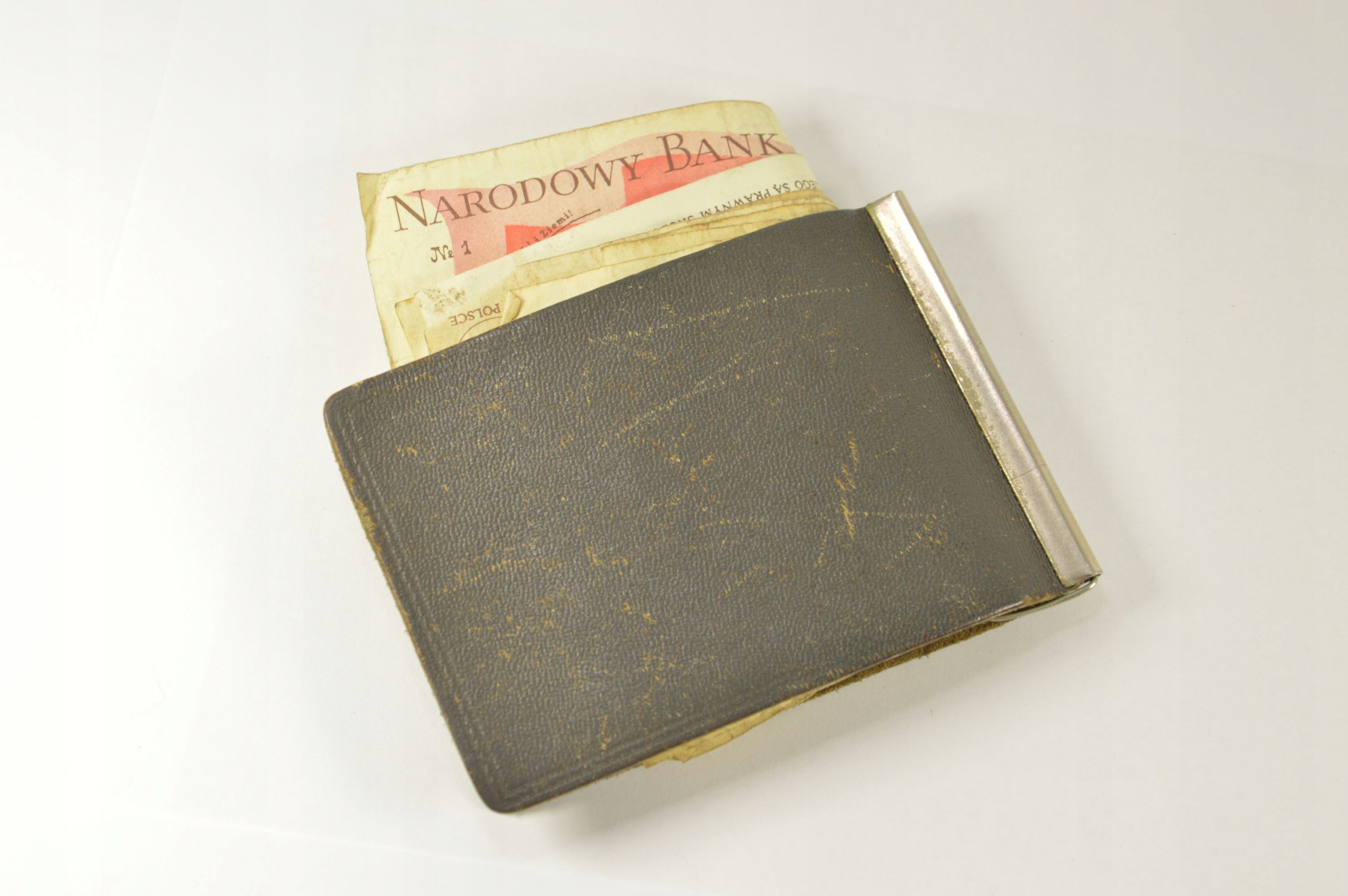 Старый кошелек для банкнот периода Польской Народной Республики. Полностью пригодный к использованию кошелек, содержит 2 банкноты по 500 злотых, 7 банкнот по 100 злотых и 2 банкноты по 50 злотых.