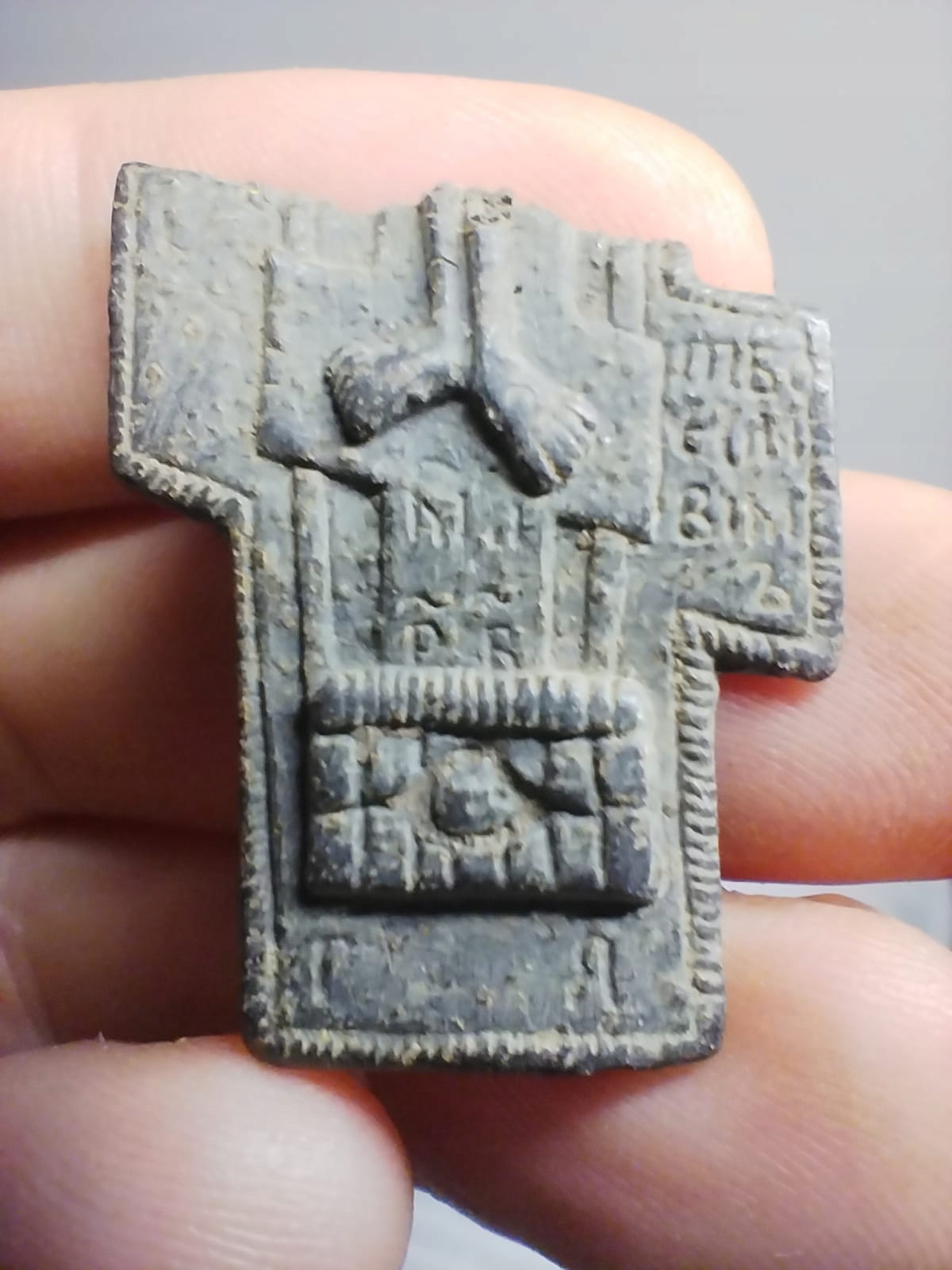 Stary prawosławny krzyż z modlitwami cyrylicą XIX wiek antyk