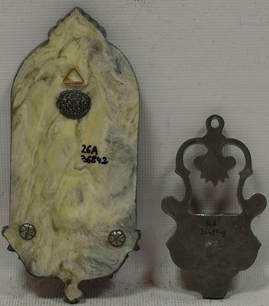 Stary relief Matka Boska z Dzieciątkiem i kropielnica 28x13/17x10