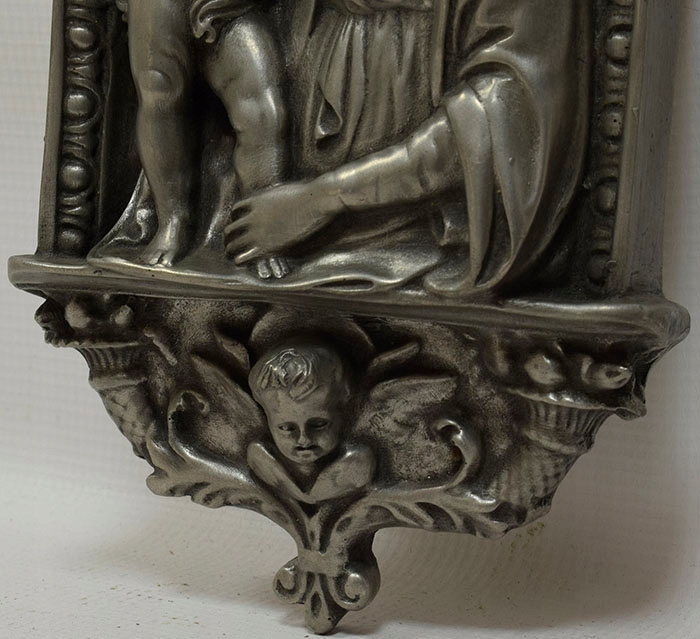 Старинный рельеф Девы Марии с Младенцем Иисусом и чашей 28х13 см / 17х10 см