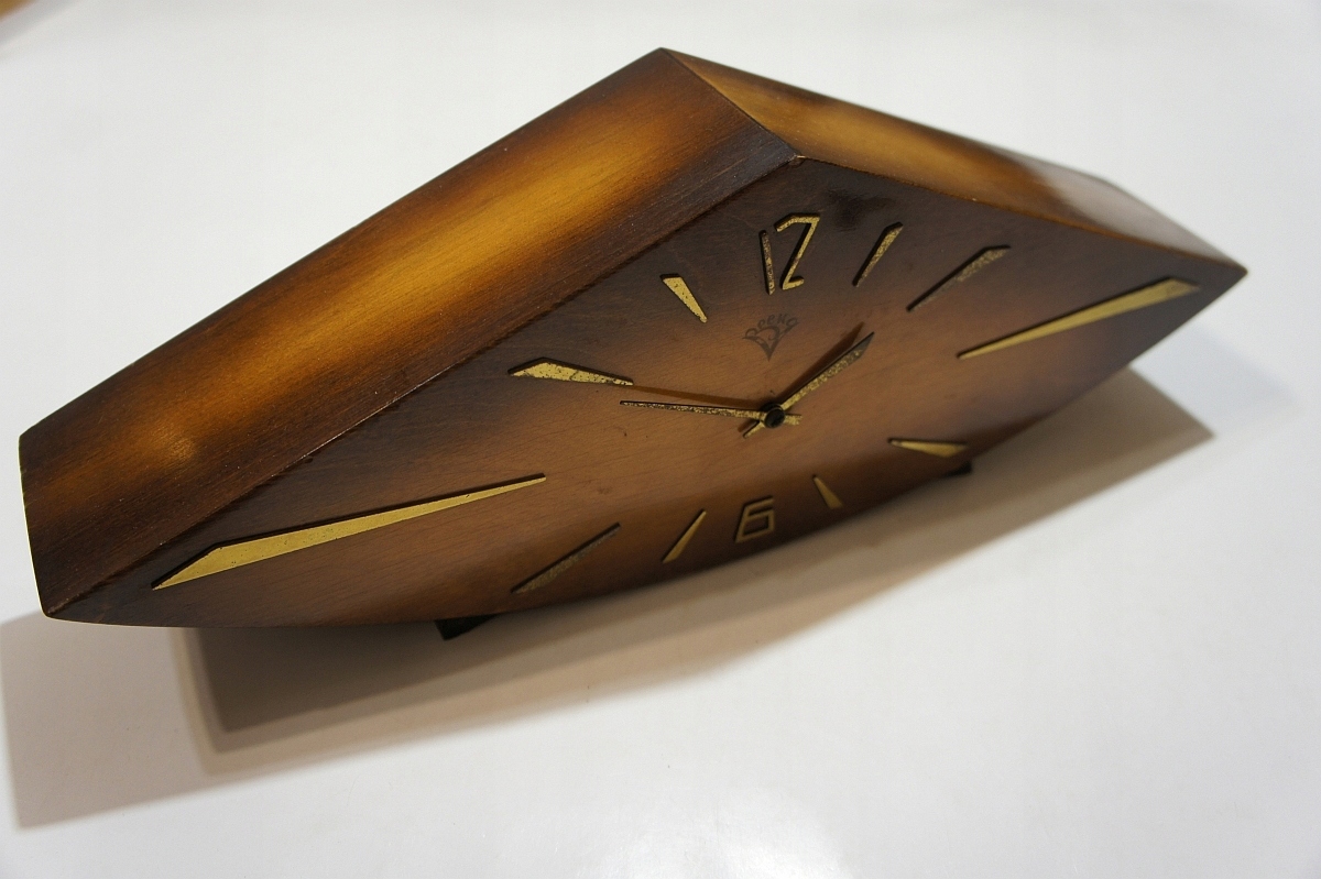STARY ZABYTKOWY KOMINKOWY ZEGAR RADZIECKI WIOSNA DREWNIAN ART-DECO ZSRR PRL