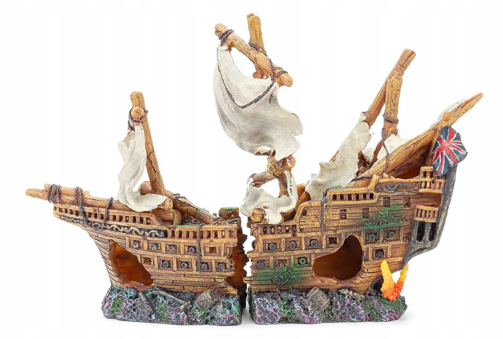 STATEK WRAK STATKU DO AKWARIUM ŁÓDŹ OZDOBA AKWARIOWA DEKORACJA ROZMIAR 25CM