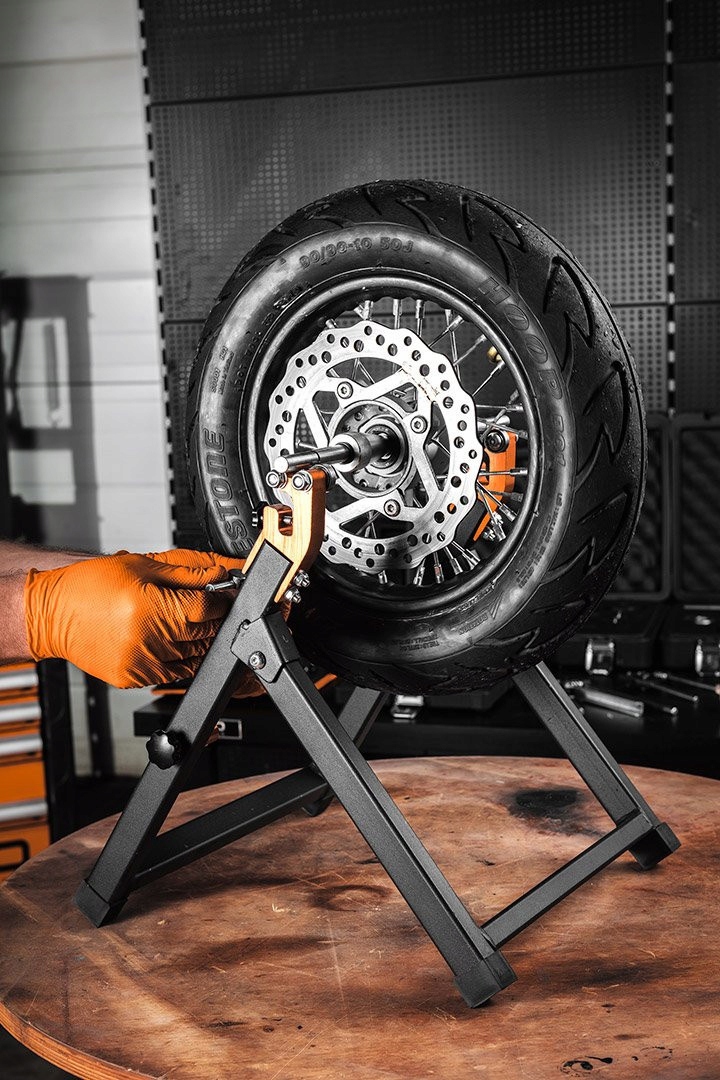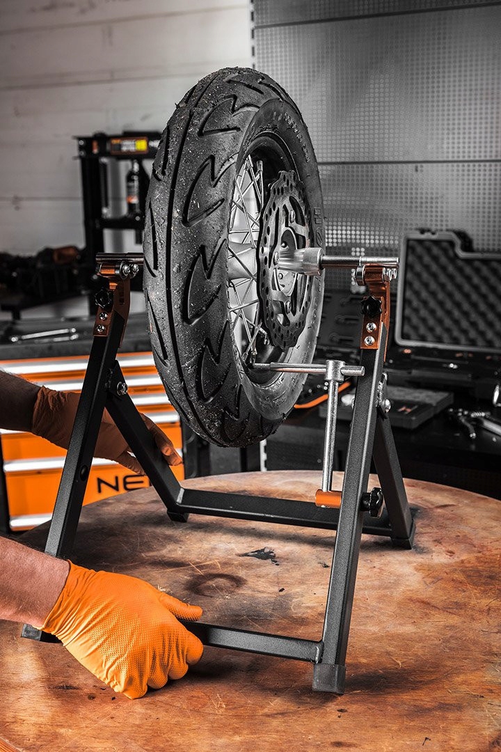 Статический балансир для колес мотоцикла 10-590 от NEO — портативный складной инструмент весом всего 3,9 кг. Точное устройство, используемое для статической балансировки колес мотоциклов. Он изготовлен из стали и позволяет работать с колесами с максимальным диаметром 21 дюйм и диаметром оси от 14 до 28 мм. Балансировочный станок NEO рекомендуется для мастерских и автомобильных заводов.