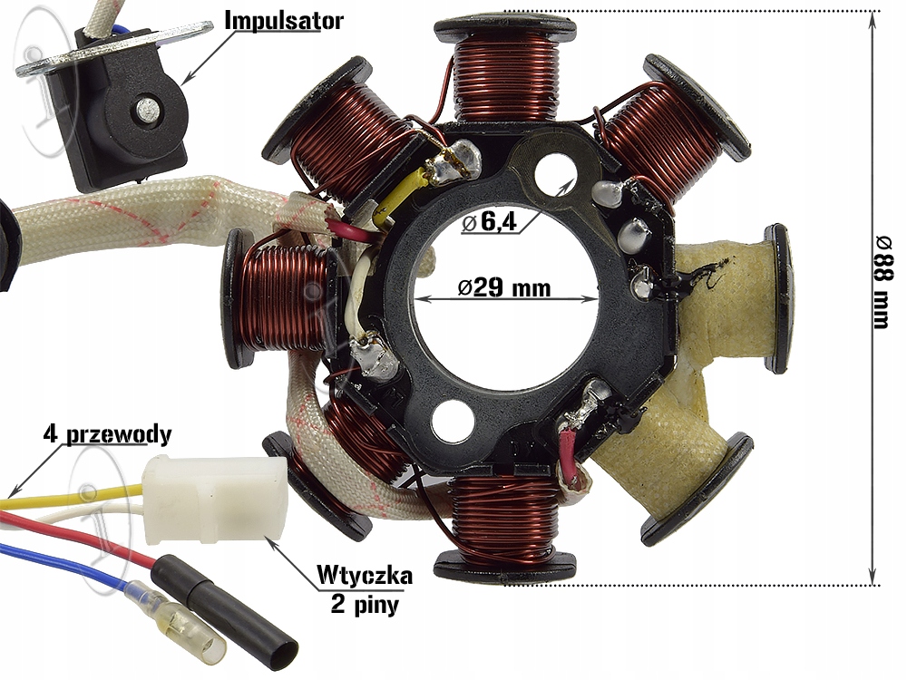СТАТОР / ЗАЖИГАТЕЛЬ С ИМПУЛЬСЕРОМ, предназначенный для скутеров 4T GY6
