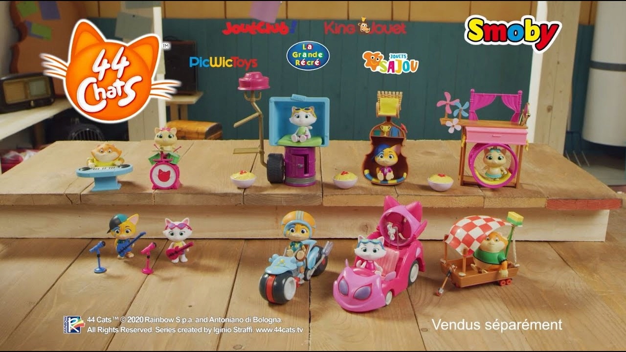 44 кота — поющий итальянский мультсериал для дошкольников. Сказка повествует о повседневных приключениях четырех котят: Лампо, Миледи, Пилу и Клопсика, которые вместе создают музыкальную группу Arcykotki.