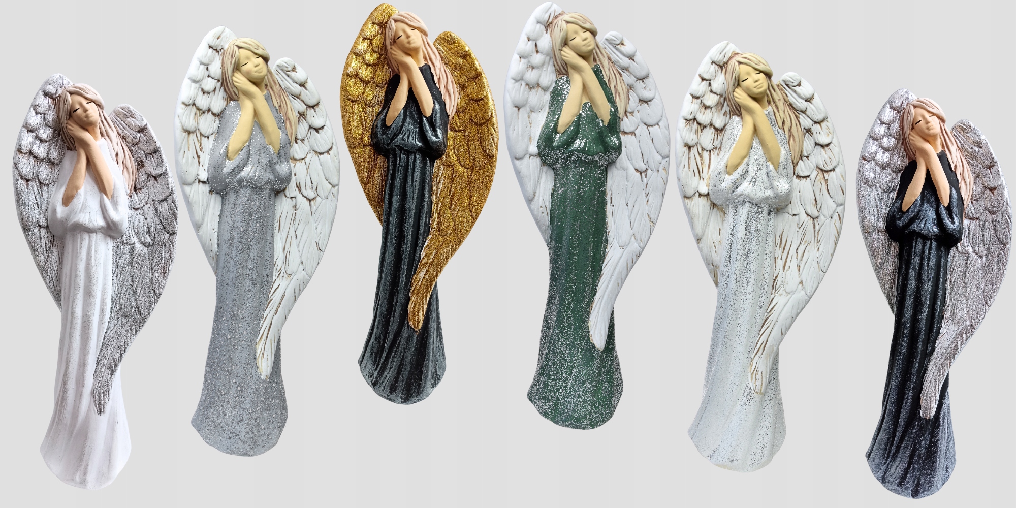 - Ангел из гипса, размеры 40 см х 15 см, зеленый с серебряным блеском, белые крылья.
