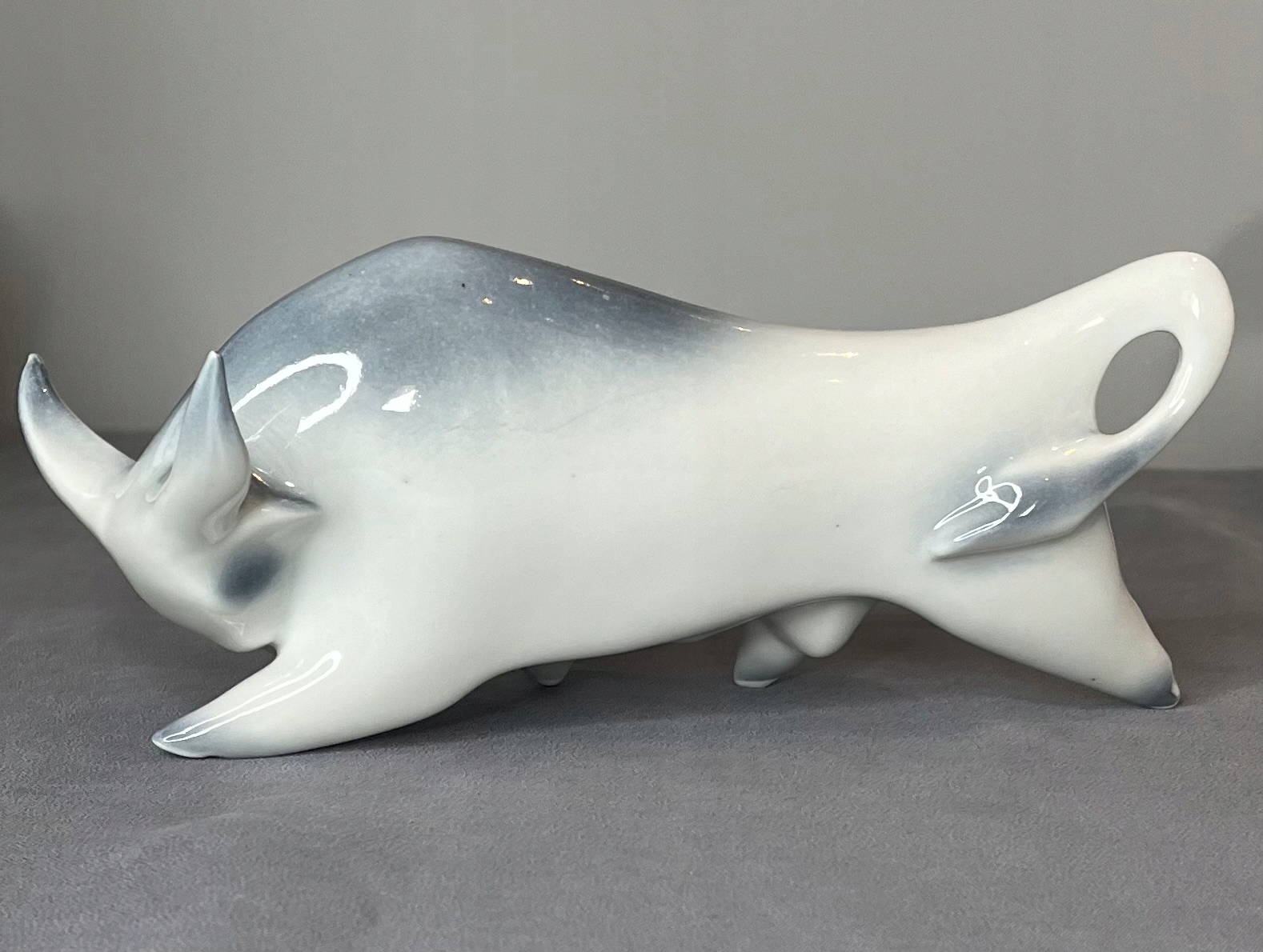 ВНИМАНИЕ! Присмотревшись, я обнаружил, что рога, скорее всего, были отремонтированы. Они никак не "острые", покрыты глазурью, но кажутся мне подозрительно "тусклыми". По этой причине я отнес фигурку к "отремонтированной" и цена снижена. р>