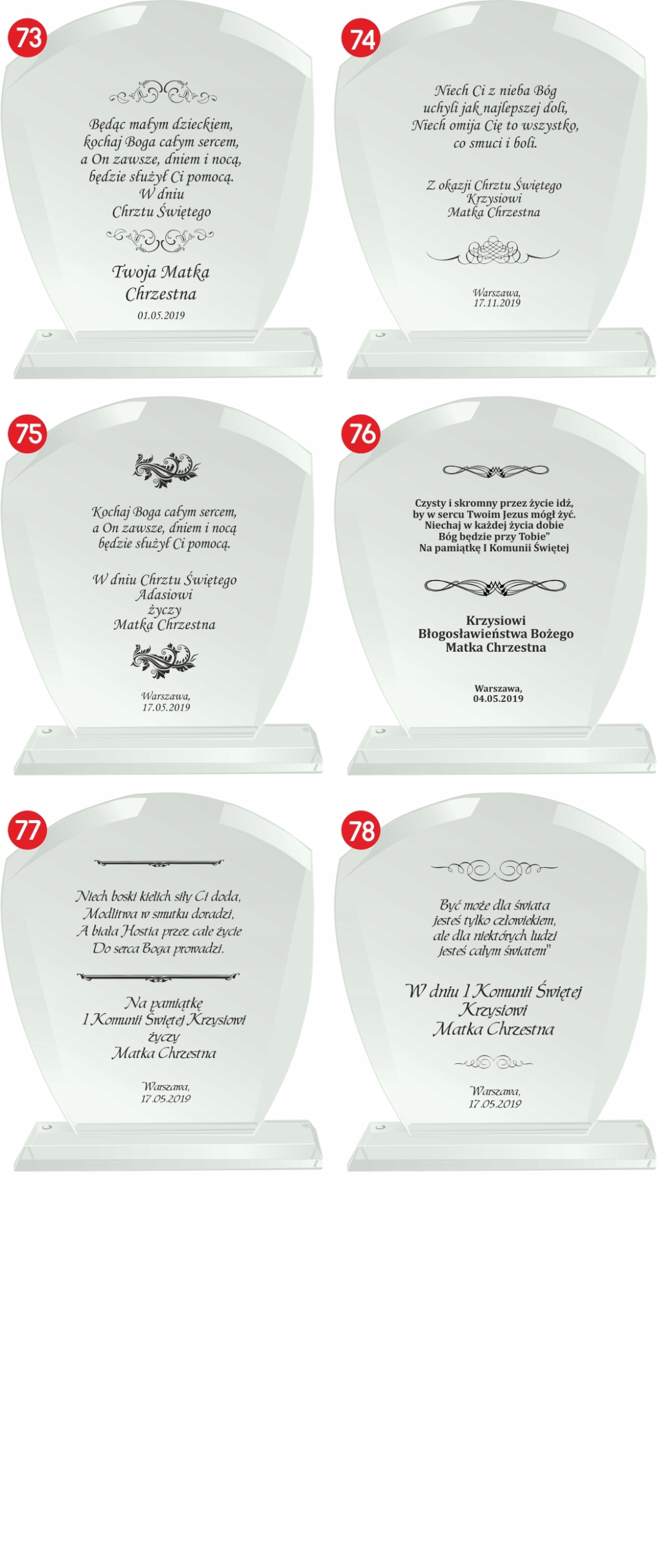 На выбранном вами продукте мы можем подготовить любую гравировку для вас для каждого случая: день рождения, день имени, крещение, причастие, восемнадцать, выпускной или другой случай. Мы привлекаем любой - предоставленный клиентом text (в редактируемой форме - ноутбука), а также на иностранном языке (после предоставления переведенного текста).