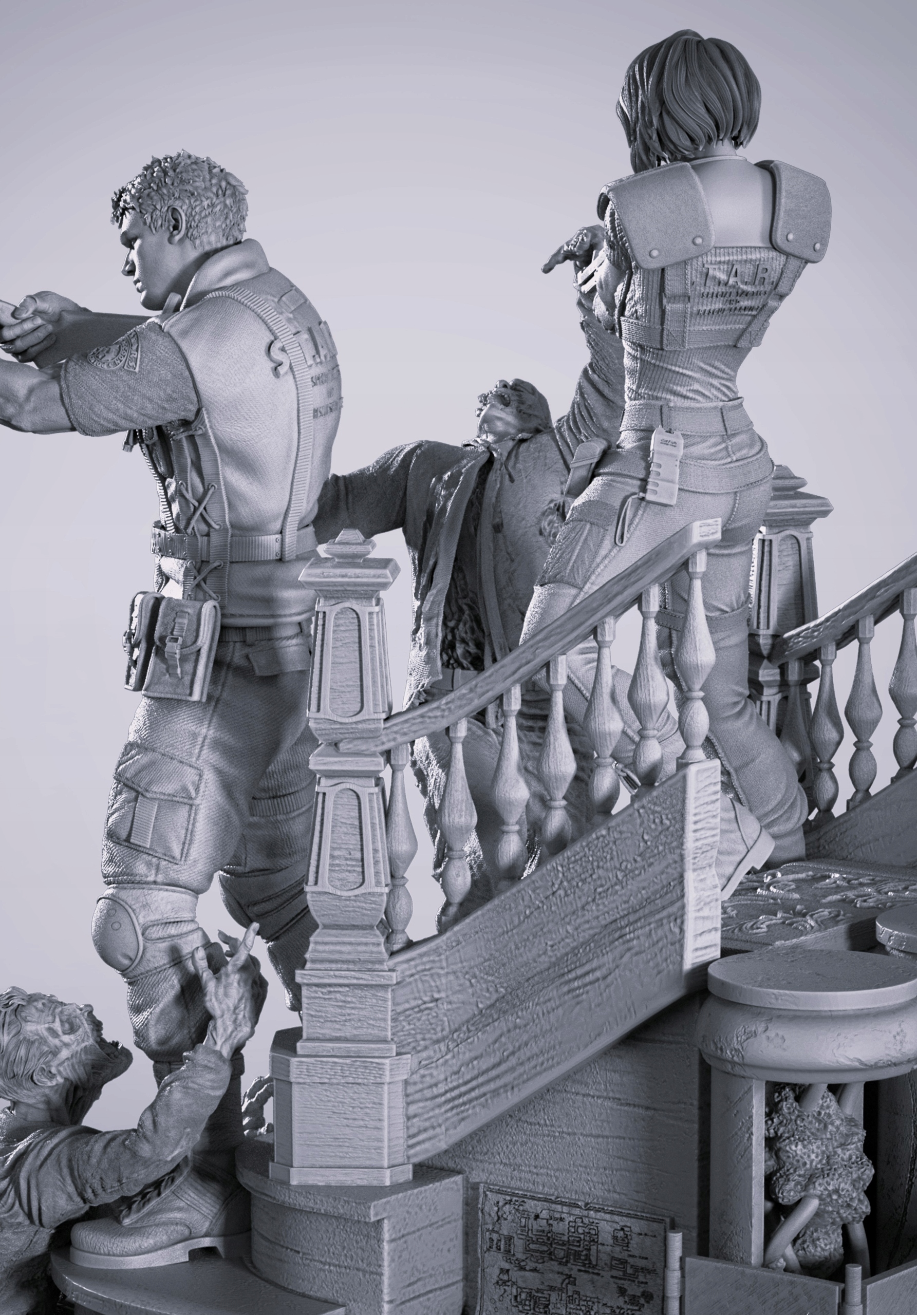Фигура для росписи - Джилл Валентайн и Крис Редфилд - 22 см Диорама с 3D-печатью смолой 16к - RESIDENT EVIL