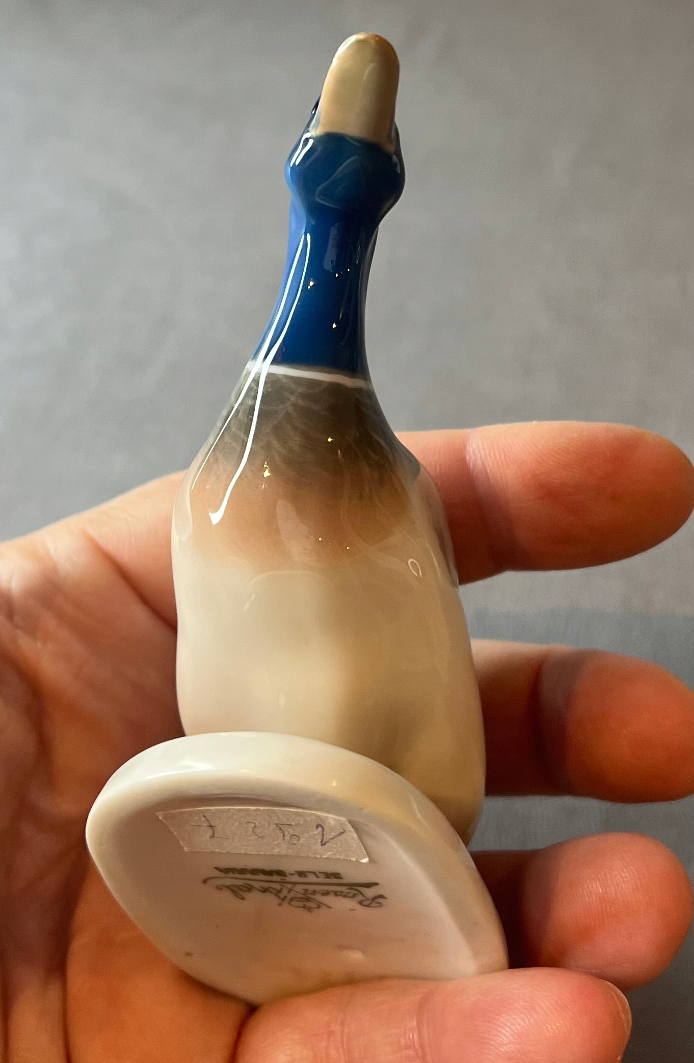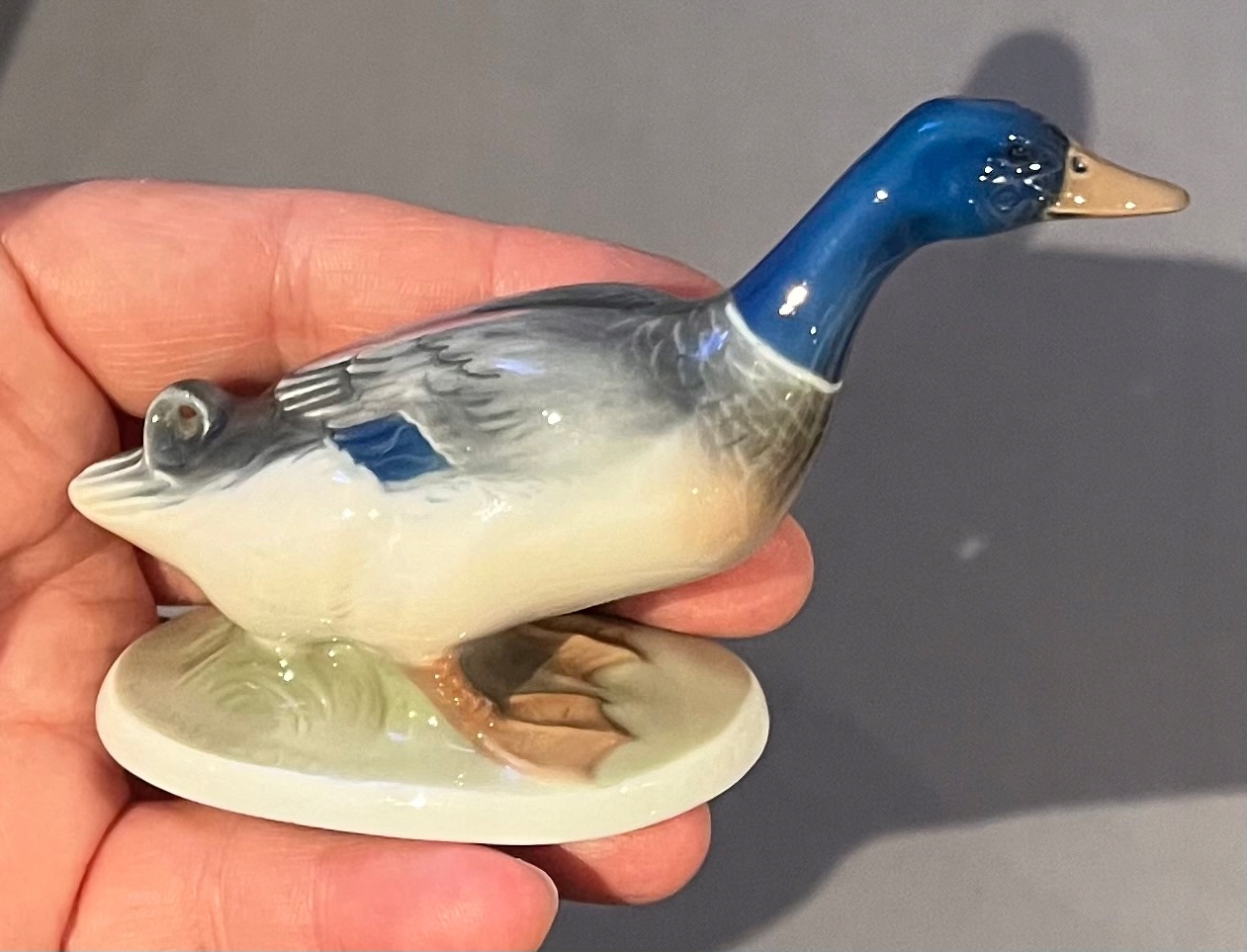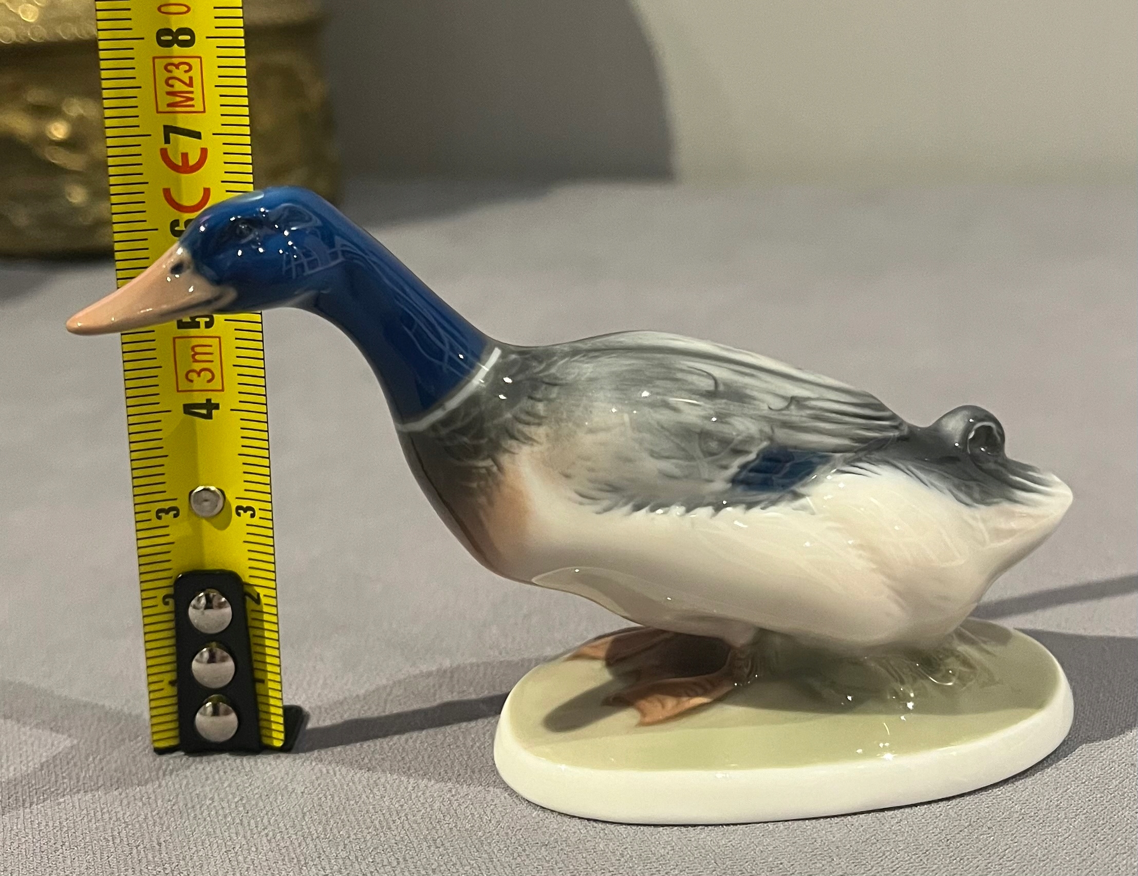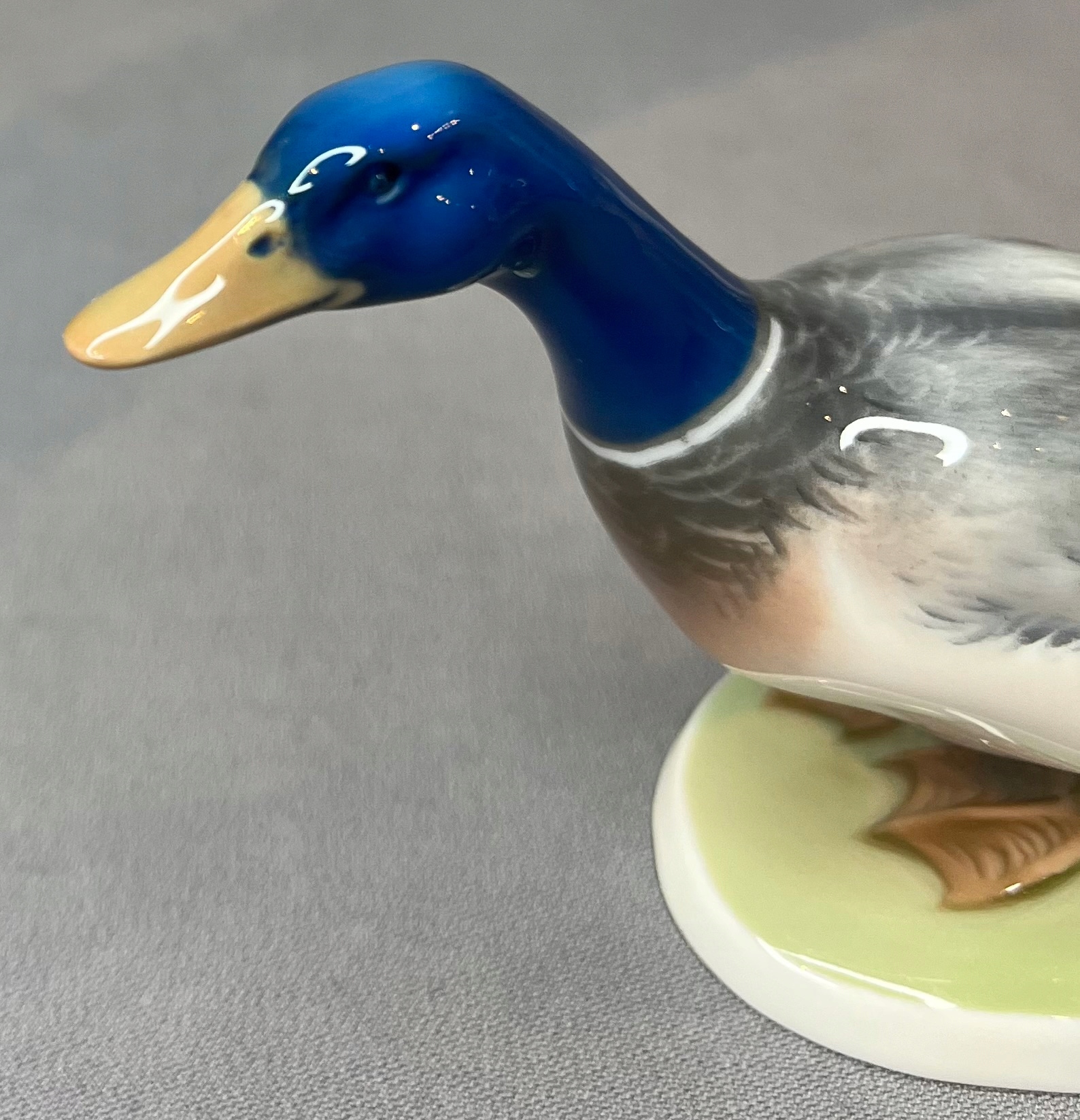 Эта красивая фарфоровая фигурка утки была изготовлена Карлом Химмельстосом, немецким художником, известным своими изысканными фигурками. Внимание к деталям и мастерство видны в каждом изгибе и перышке этого изделия. Сделанная в Германии статуэтка является настоящим произведением искусства и востребованным предметом коллекционирования. Подписано именем дизайнера (фото).