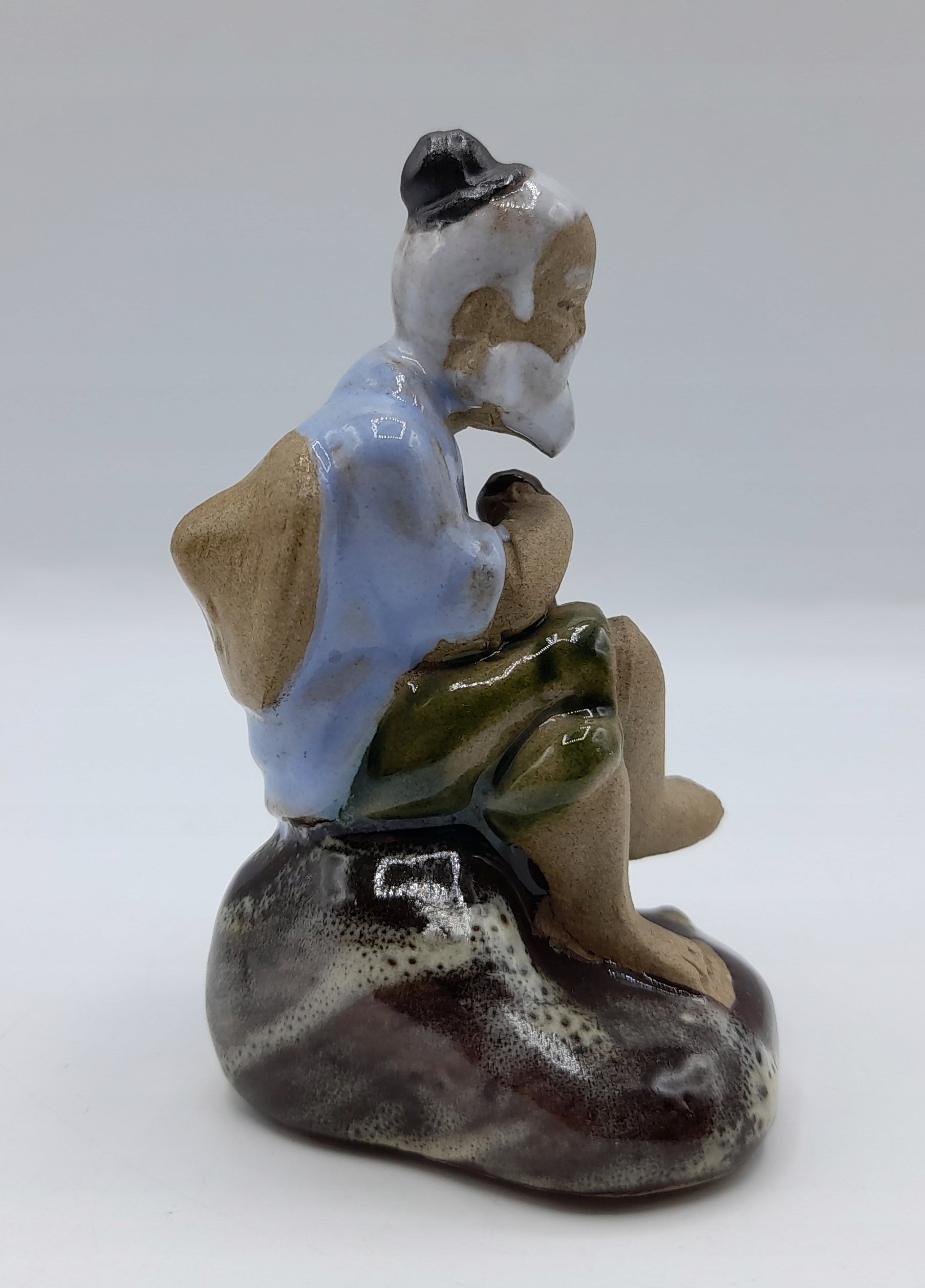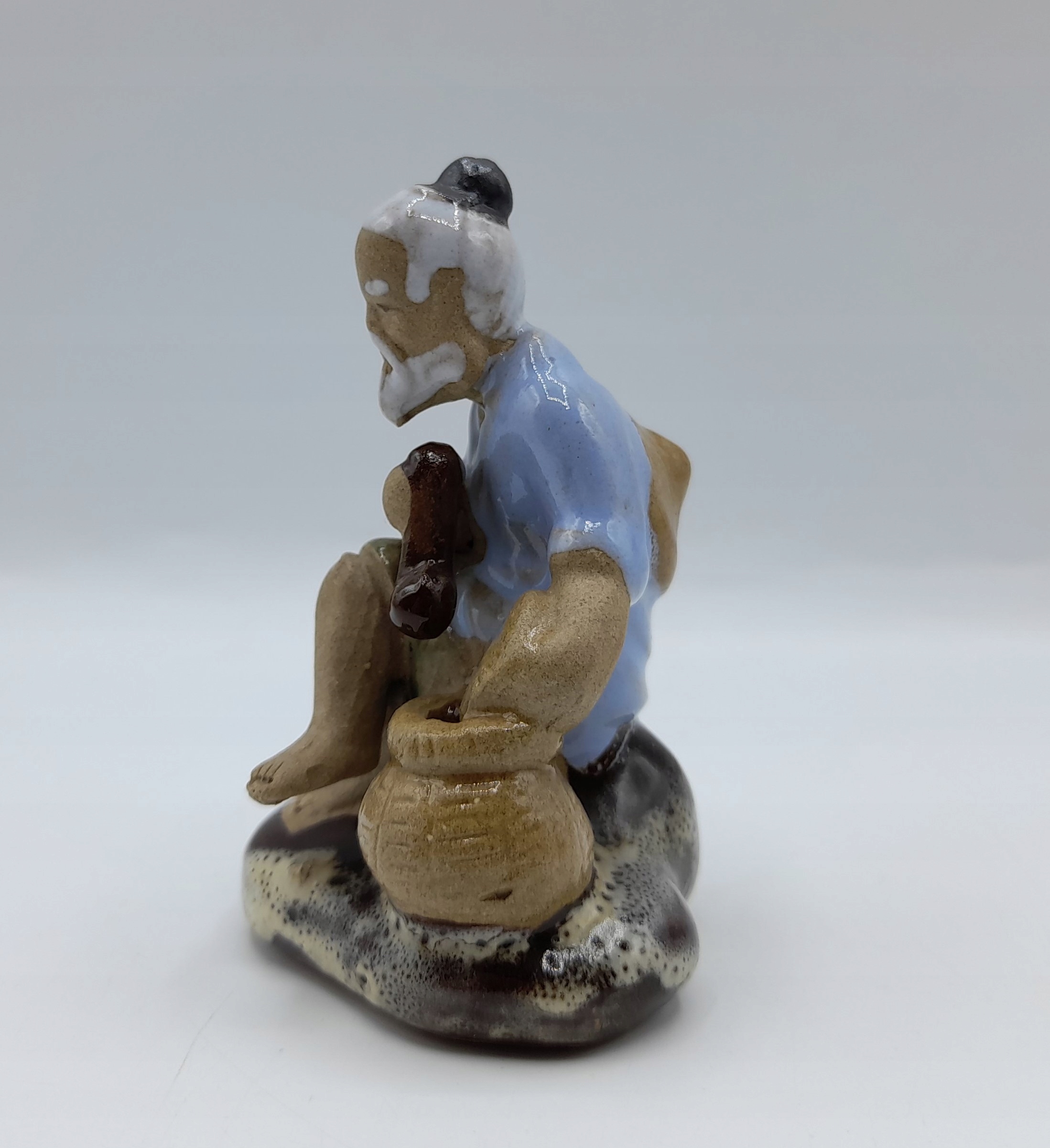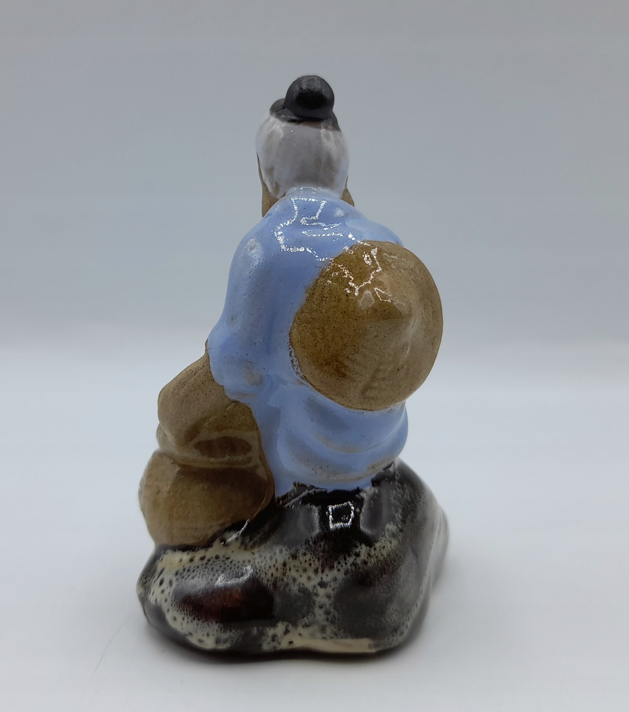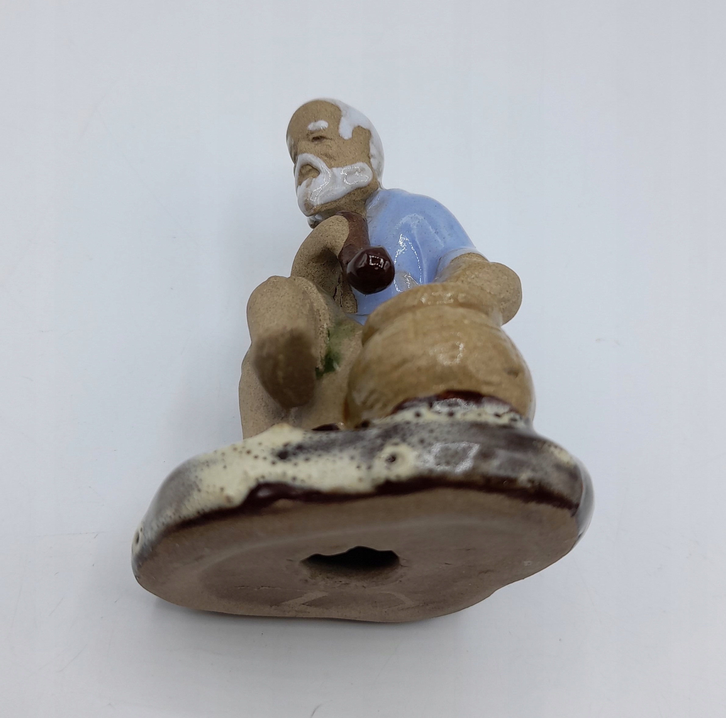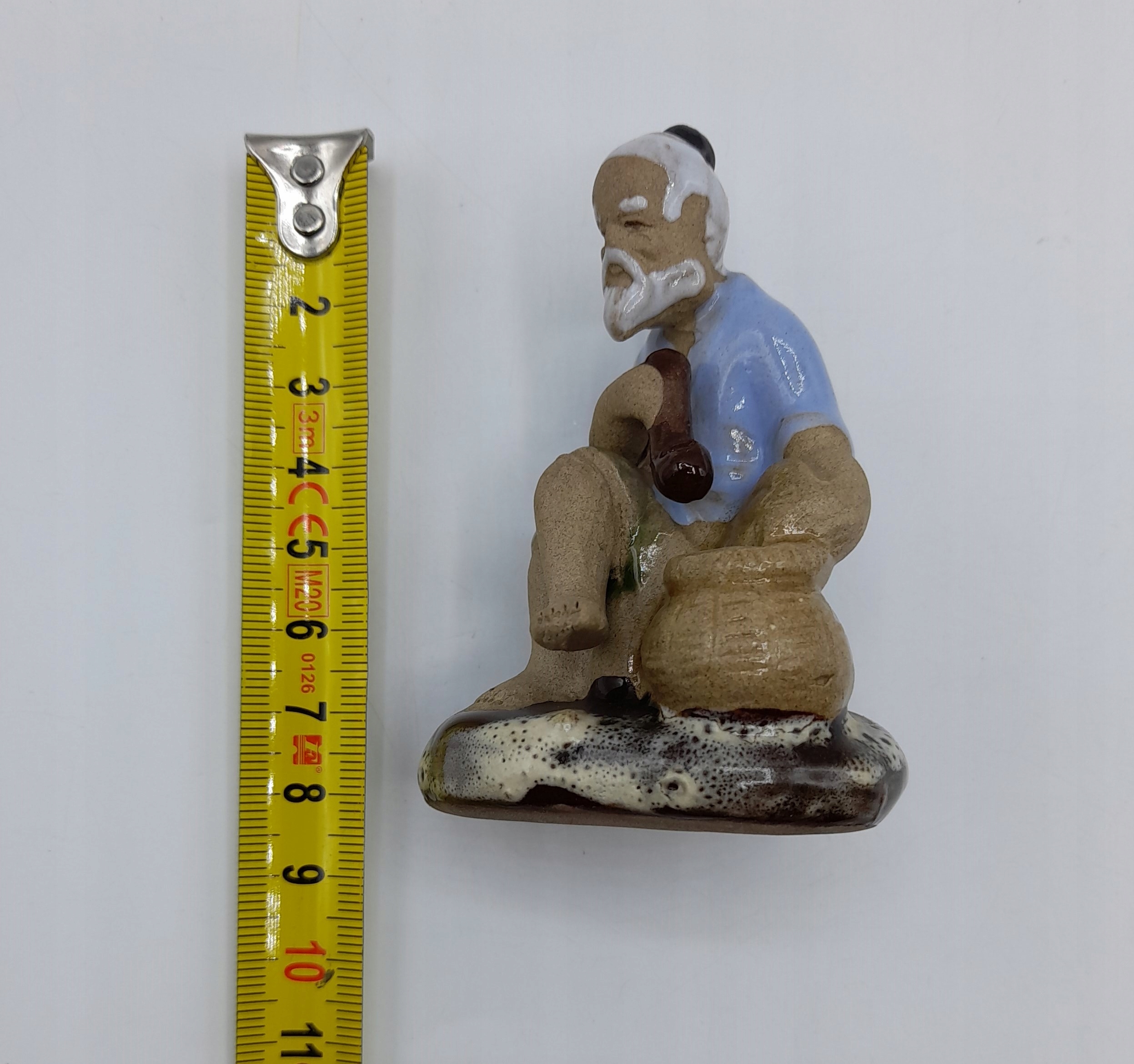 статуэтка, сделанная из глины / эти статуэтки, широко известна как грязь или фигурки из грязи / в основном из гончарных центров в регионе Шиван и Ванцзян в провинции Гуандун в Китае. Они были произведены с конца 19 -го века до середины века. Все статуэтки были сделаны вручную из легкой, темной или красноватой глины. Каждому Muddym была вручена с низкой температурой свинцом в желтой, синей или зеленой глазури с случайным использованием белого или коричневого цвета. Лицо, руки и ноги оставались безрассудными, чтобы раскрыть естественный цвет грязи. Детали удивительны, особенно вокруг лица, что всегда очень реалистично. Из -за того, что все они были сделаны вручную, нет двух из тех же фигурков !!!